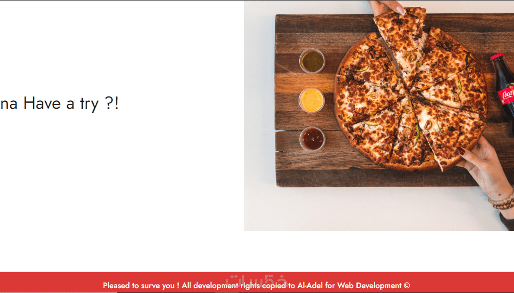 تستطيع الحصول على الموقع الخاص بك مع تغيير اسم الموقع وإضافة قائمة الطعام الخاصة بك فى قائمة مخصصة واحدة فقط (مثال: بيتزا) .