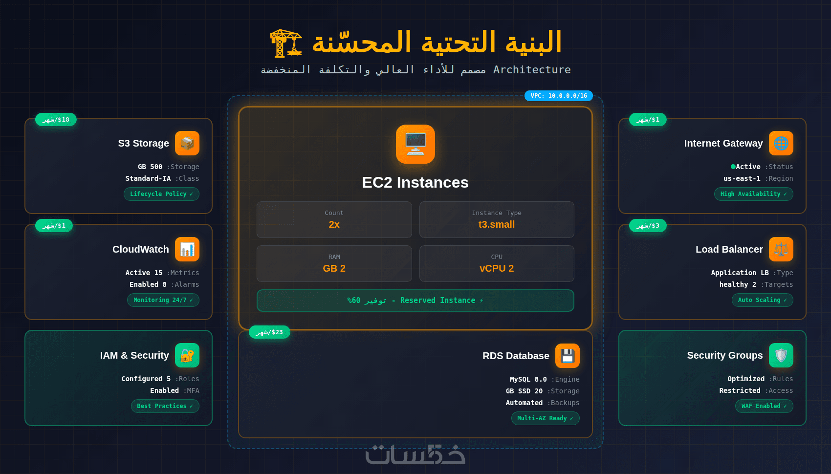 تحسين إعداد EC2 و RDS و S3 لأقل تكلفة ممكنة