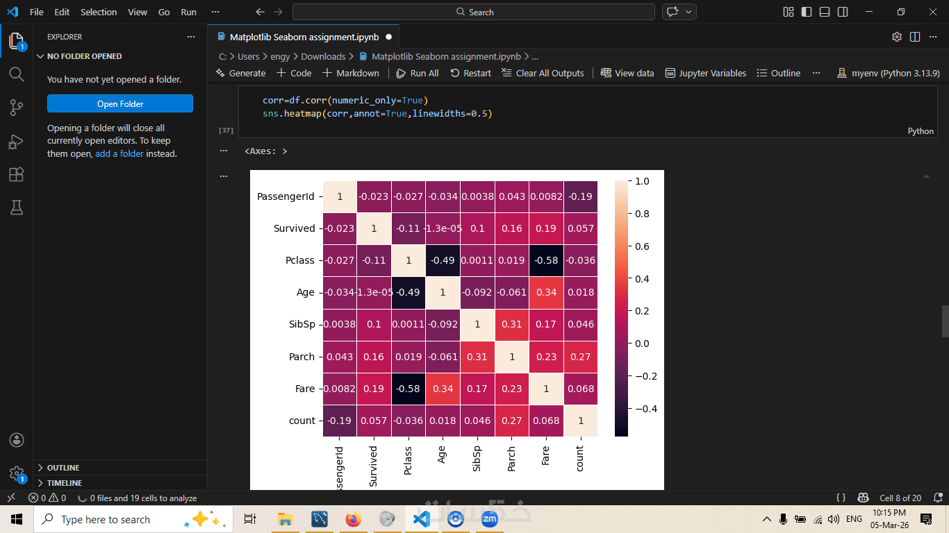 التجميع والتلخيص: حساب المتوسطات، الأعداد، والارتباطات بين المتغيرات المختلفة باستخدام دالة groupby.