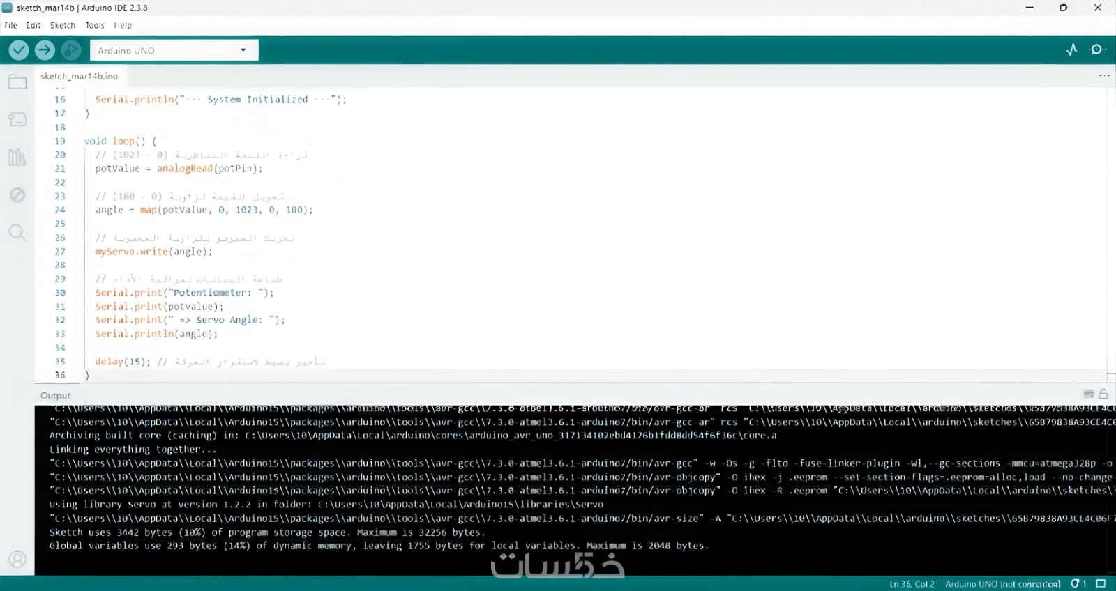 نسخة نهائية من الكود: ملف بصيغة .ino مصحح ومختبر برمجياً وجاهز للرفع.