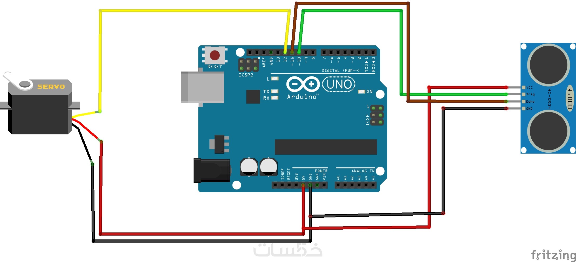 وصف للتوصيلات: شرح بسيط لمكان توصيل الأسلاك والحساسات على بوردة الأردوينو.