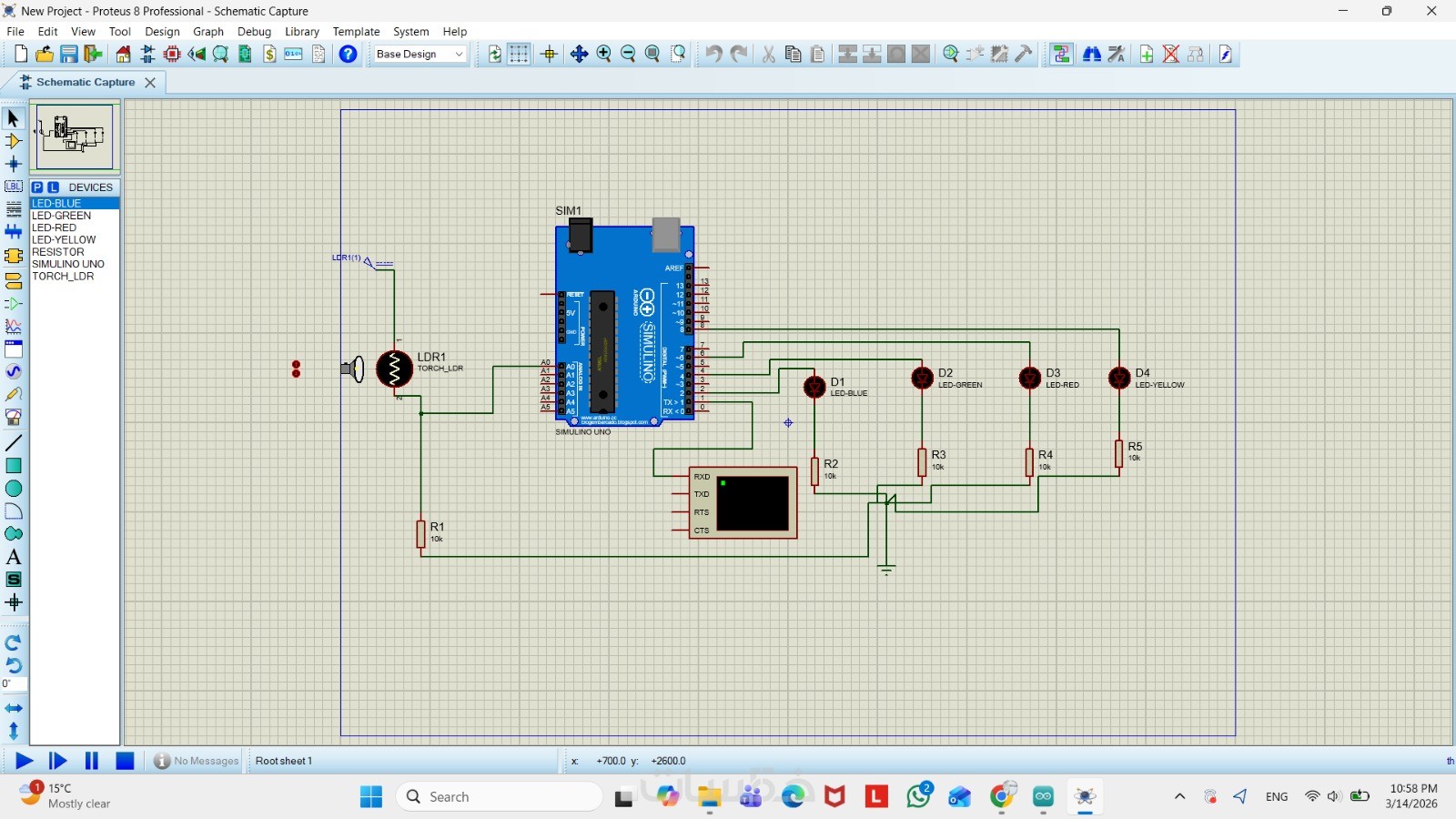 رسم مخطط للدايرة الالكترونيه بحد اقصى 10 مكونات باستخدام برنامج التصميم