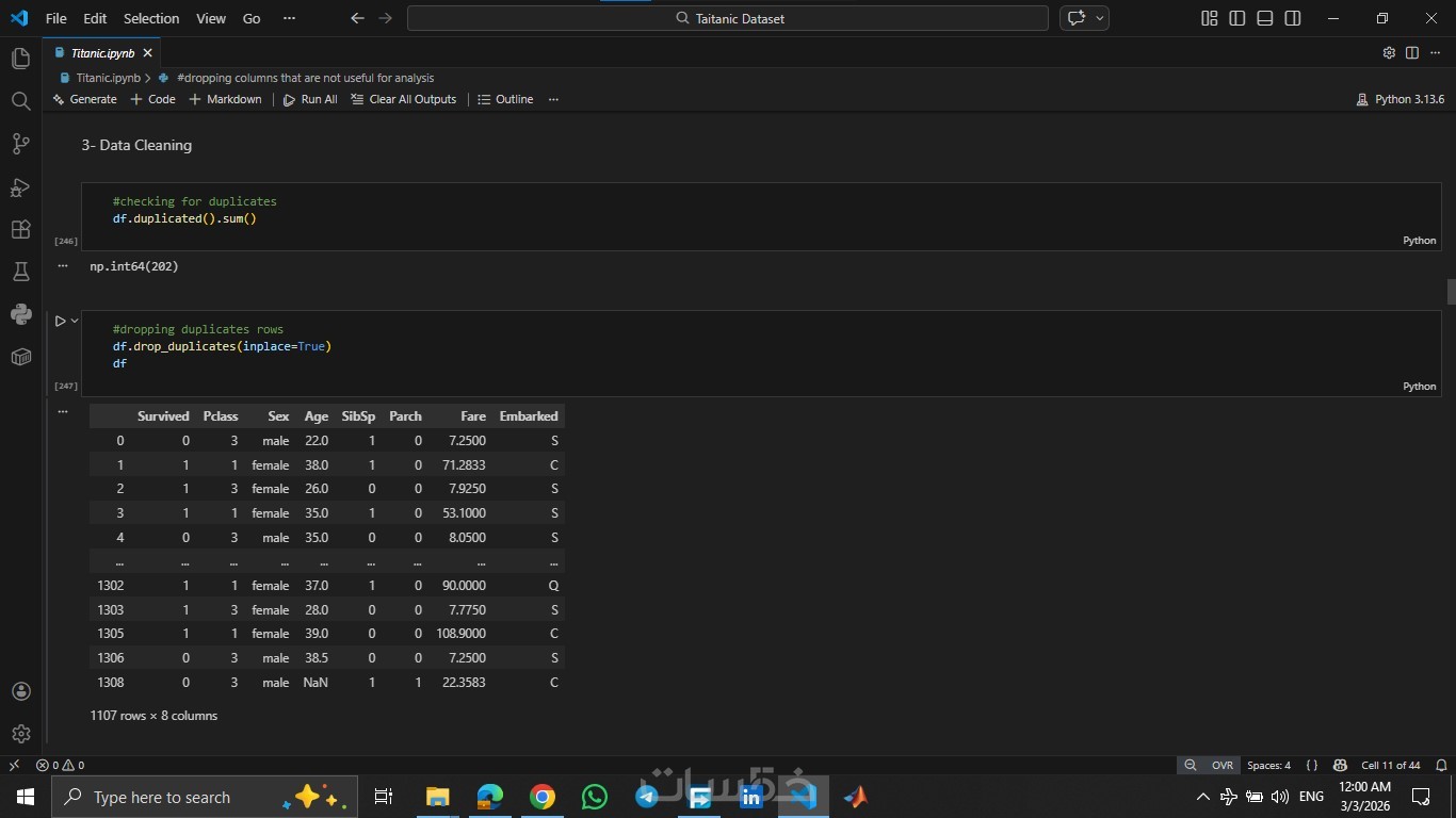 ملف بصيغة .ipynb يحتوي على الكود البرمجي الذي تم استخدامه خطوة بخطوة. الكود سيكون منظماً وموثقاً بتعليقات (Comments) تشرح كل عملية تمت على البيانات.