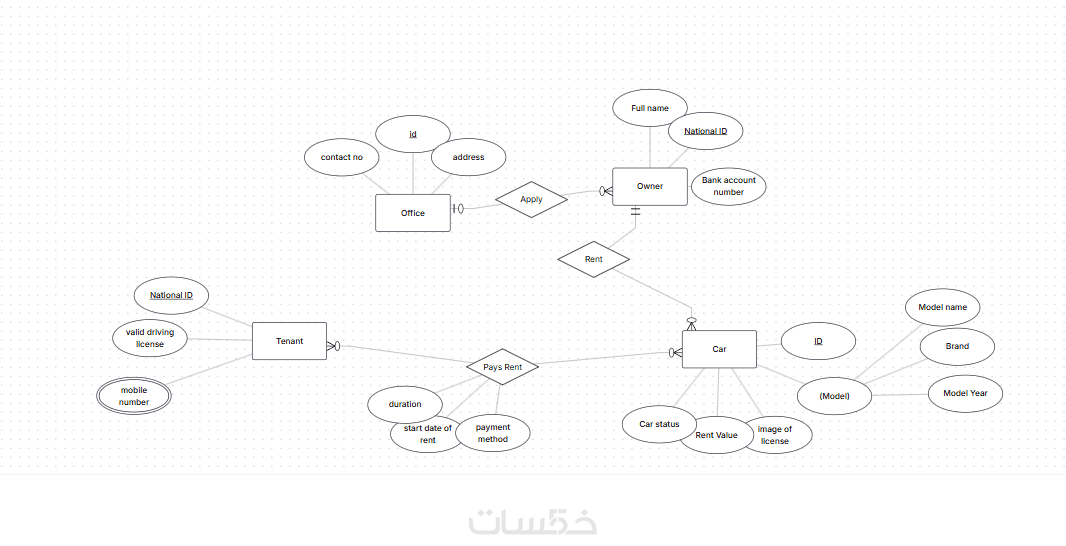 ملف بصري (PDF أو Image) يوضح الكيانات (Entities)، الخصائص (Attributes)