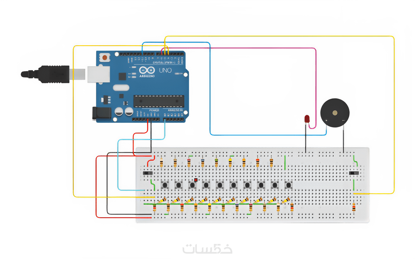 يوضح التوصيلات الصحيحة مع الأردوينو
