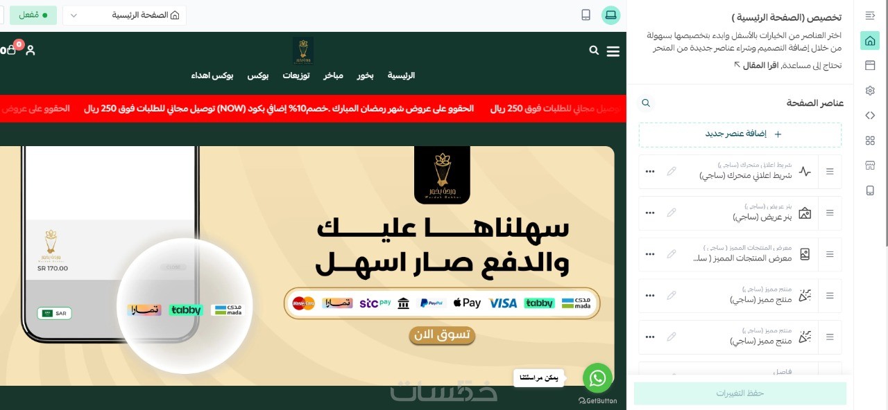 إضافة الصفحات التعريفية + إضافة اعلانات في المتجر + إضافة كوبونات تخفيض وإنشاء عروض خاصة