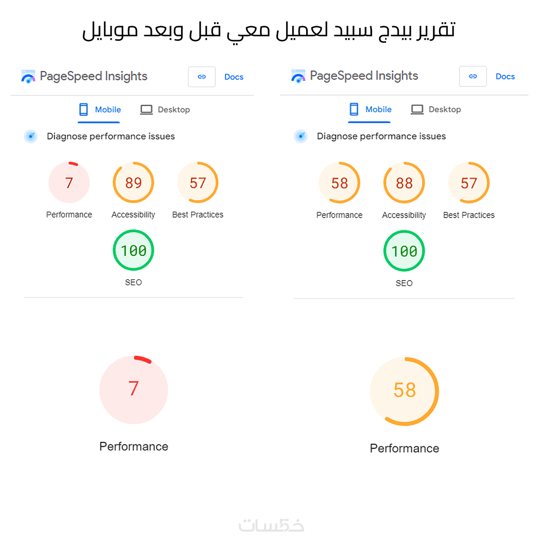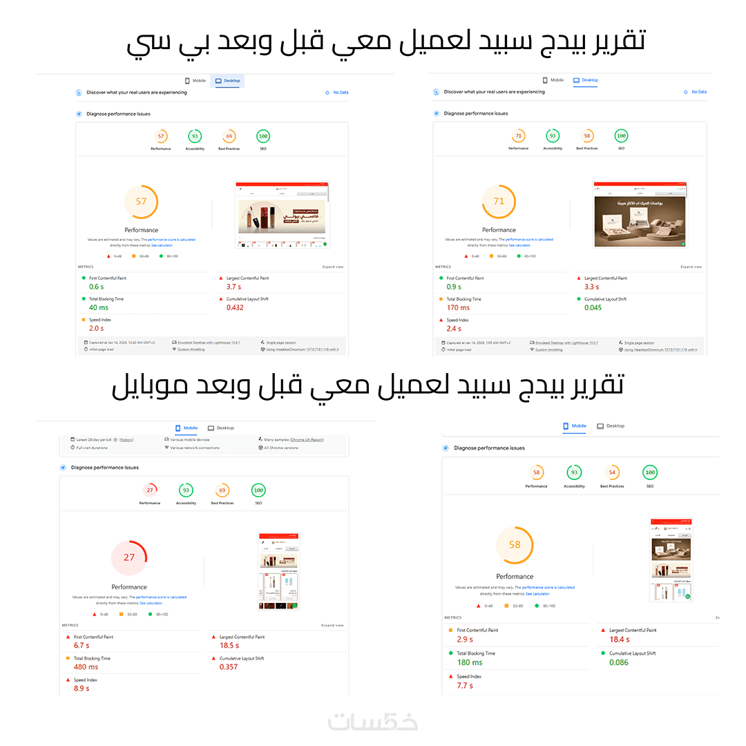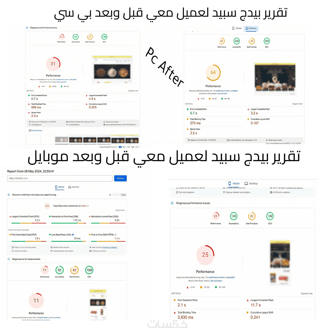 5- تقرير قبل/بعد التحسين من أداة PageSpeed Insights .