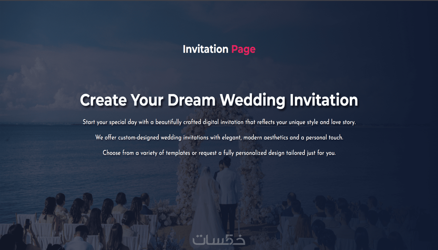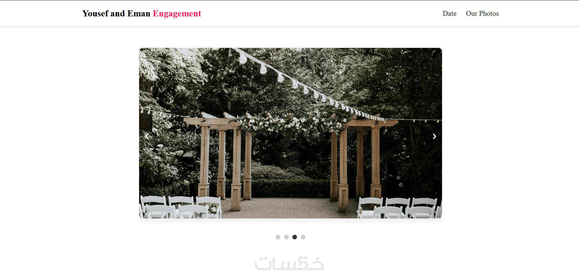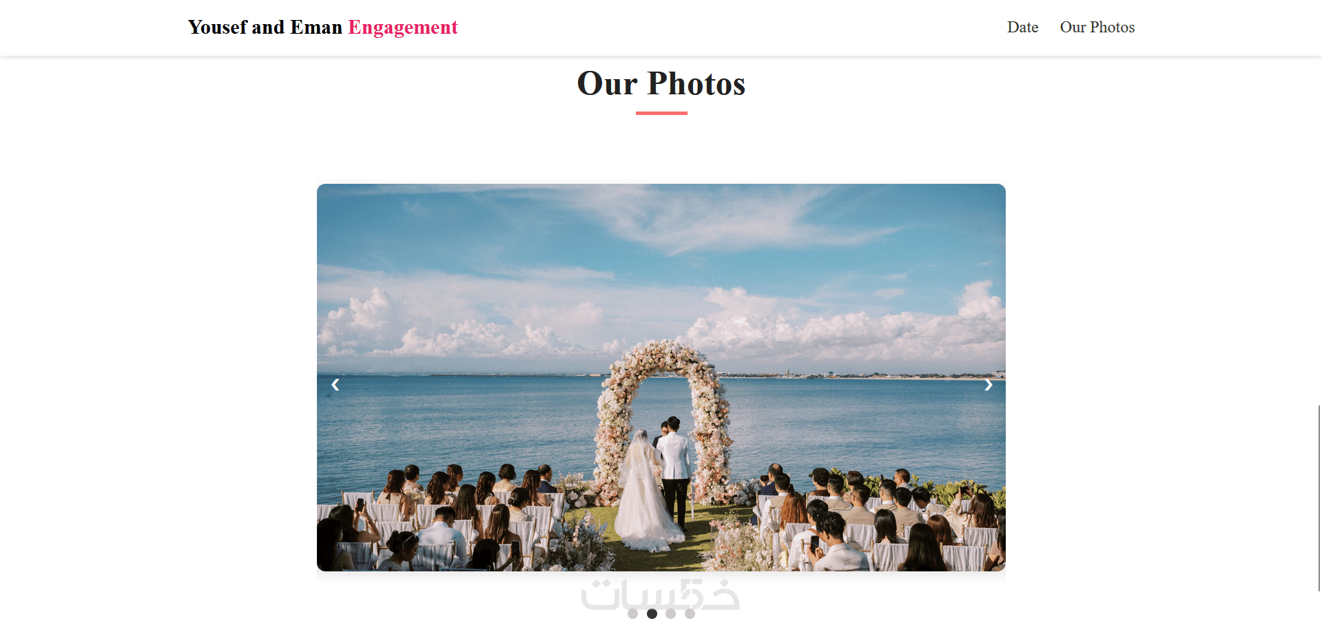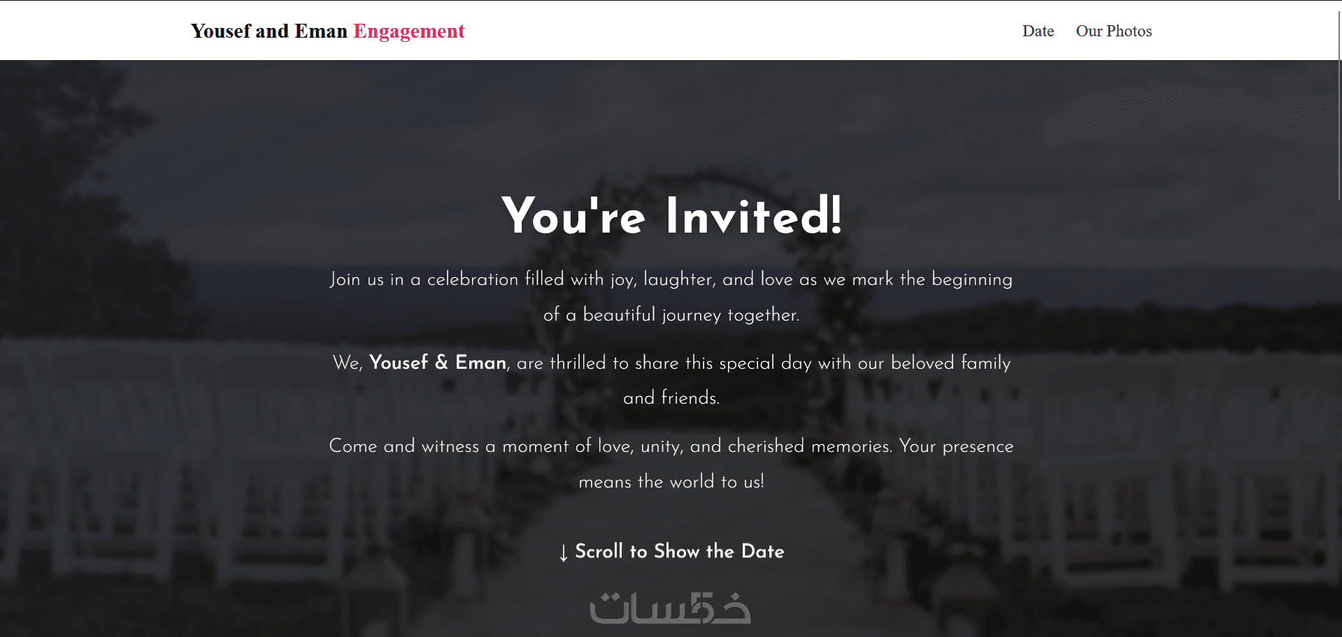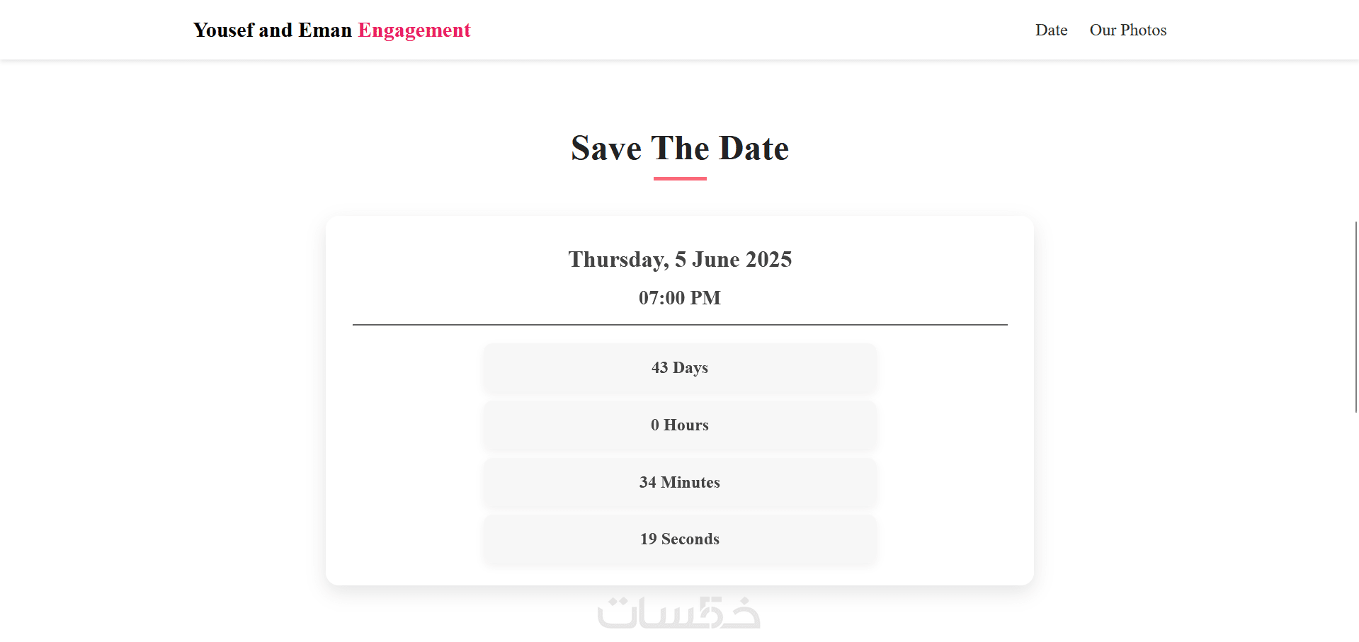 صفحة ويب لدعوة خطوبة أو زفاف بتصميم جذاب وعد تنازلي وصور