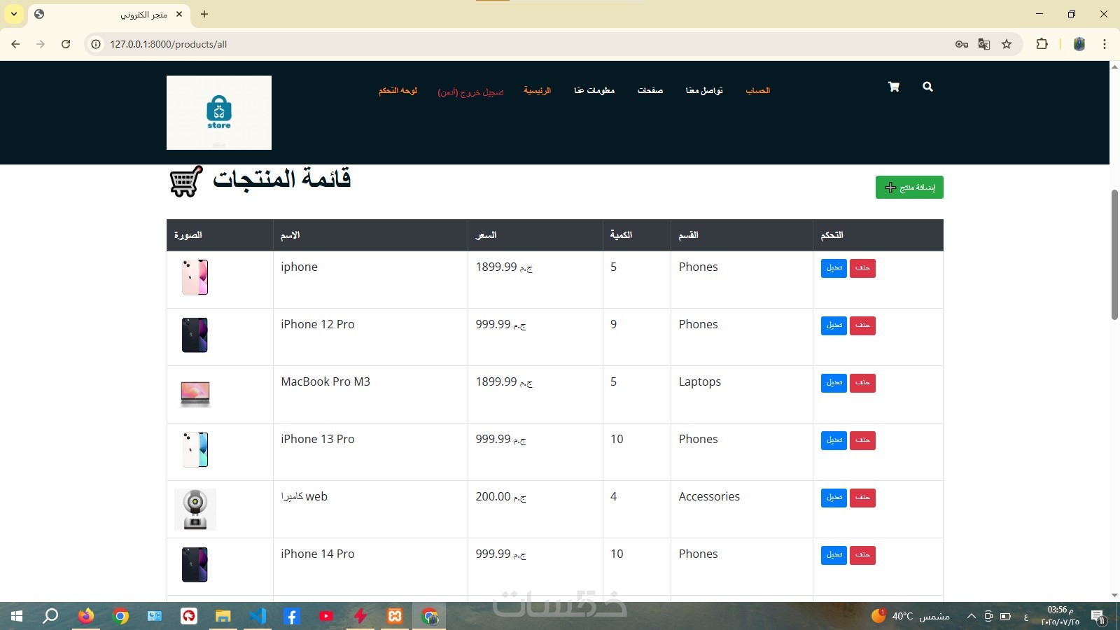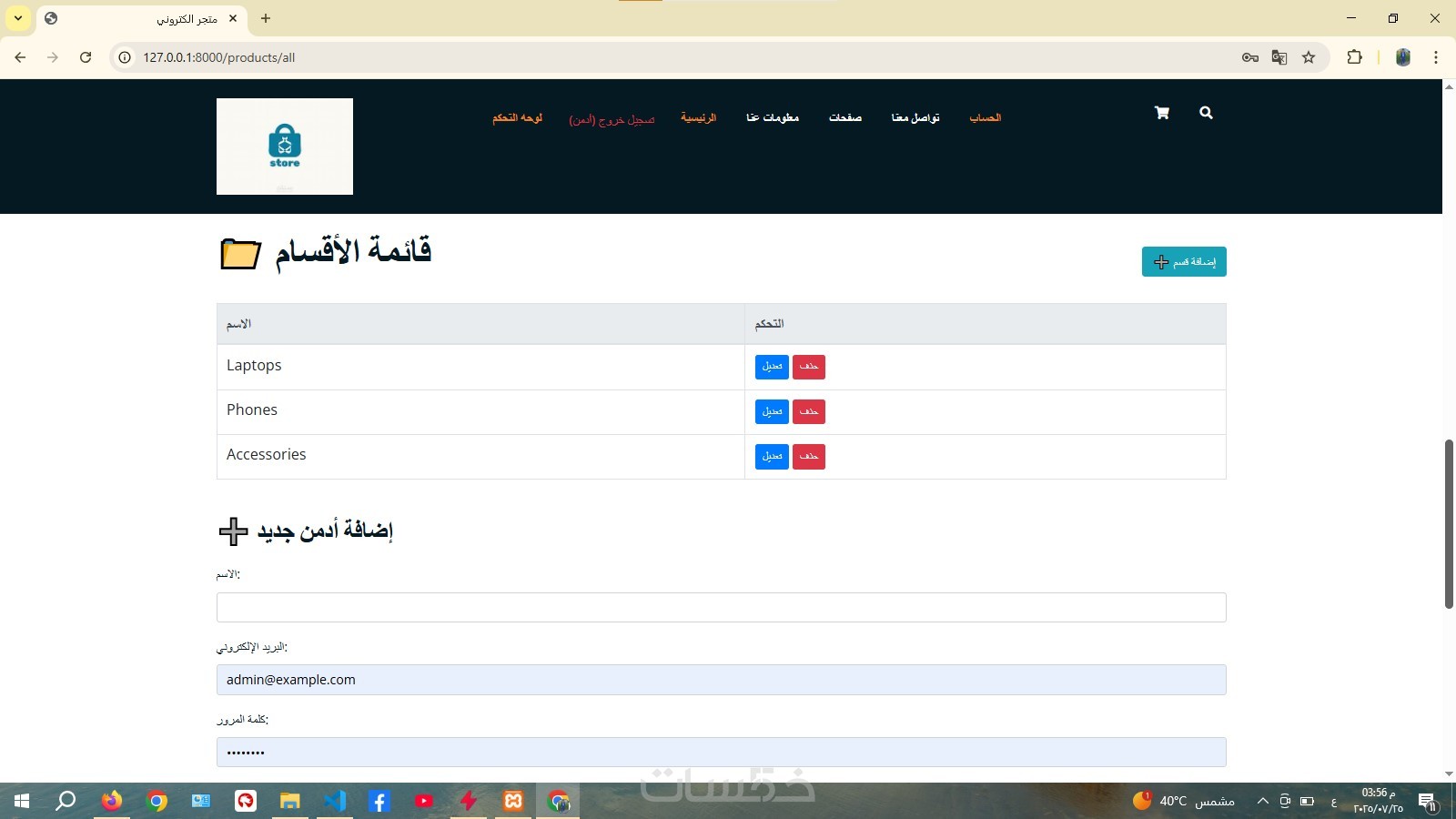 صفحة الأقسام (Categories) 1 عرض جميع الأقسام مع إمكانيات الإضافة والتعديل والحذف