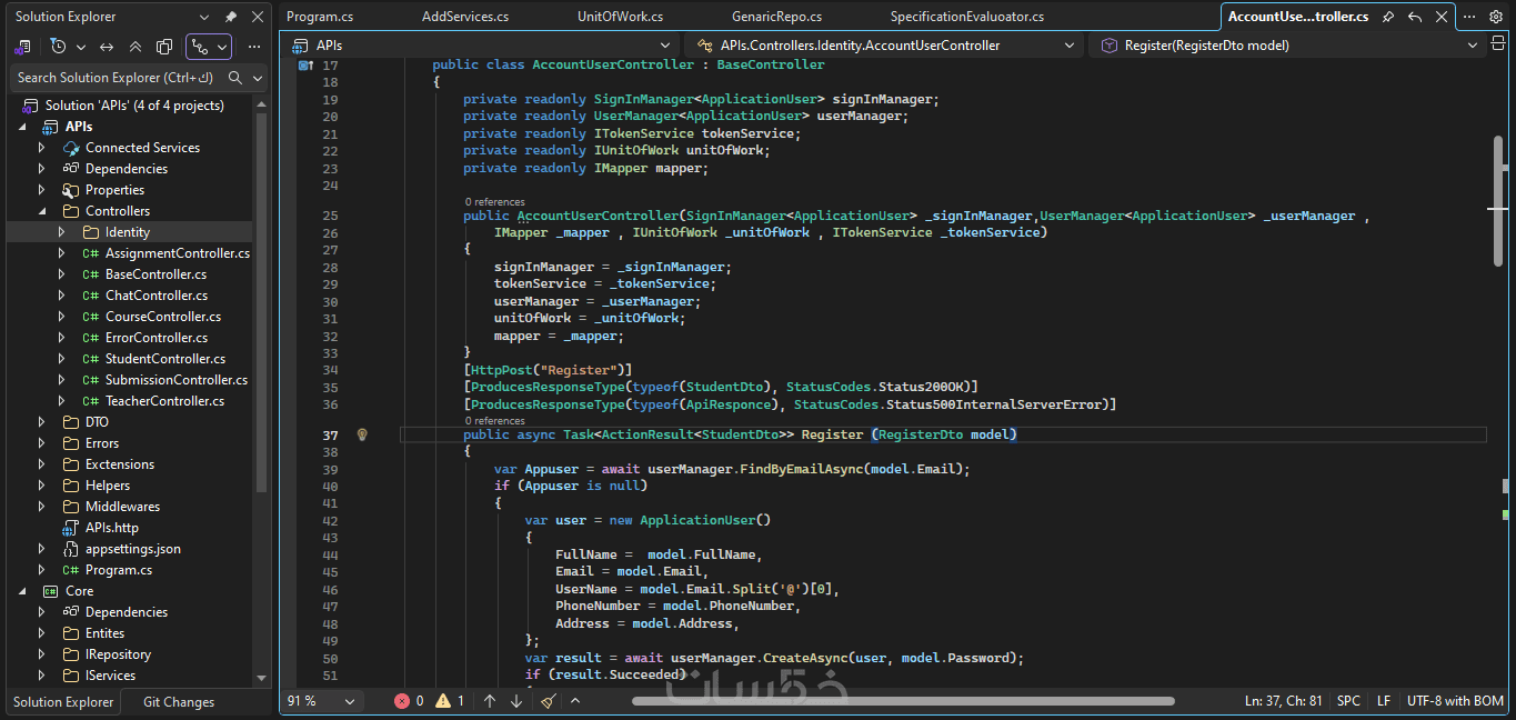 أنا هطور لك نظام خلفي كامل باستخدام ASP.NET Core، مع قاعدة بيانات منظمة وواجهة برمجية (API) جاهزة للتكامل مع أي واجهة أمامية أو تطبيق موبايل.
