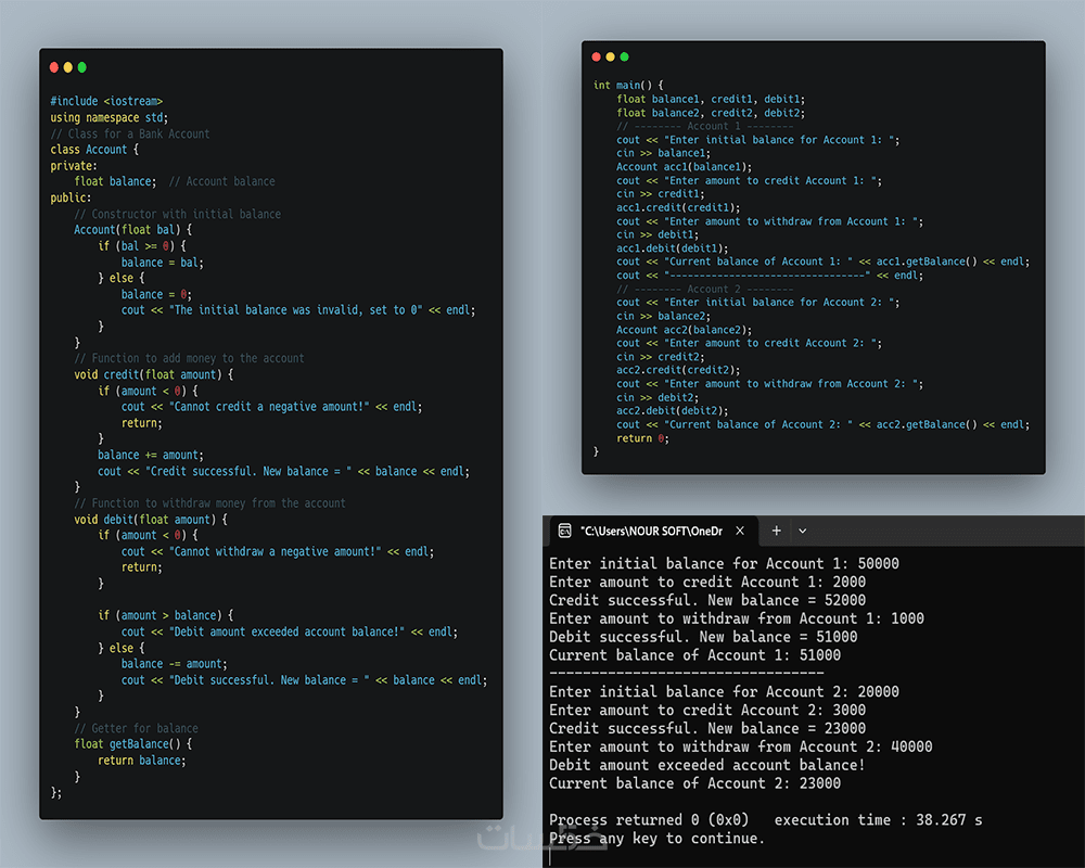 - تنفيذ برامج منظم حتى 200–400 سطر كود، تشمل إنشاء Classes واستخدام Objects وMethods بطريقة عملية.