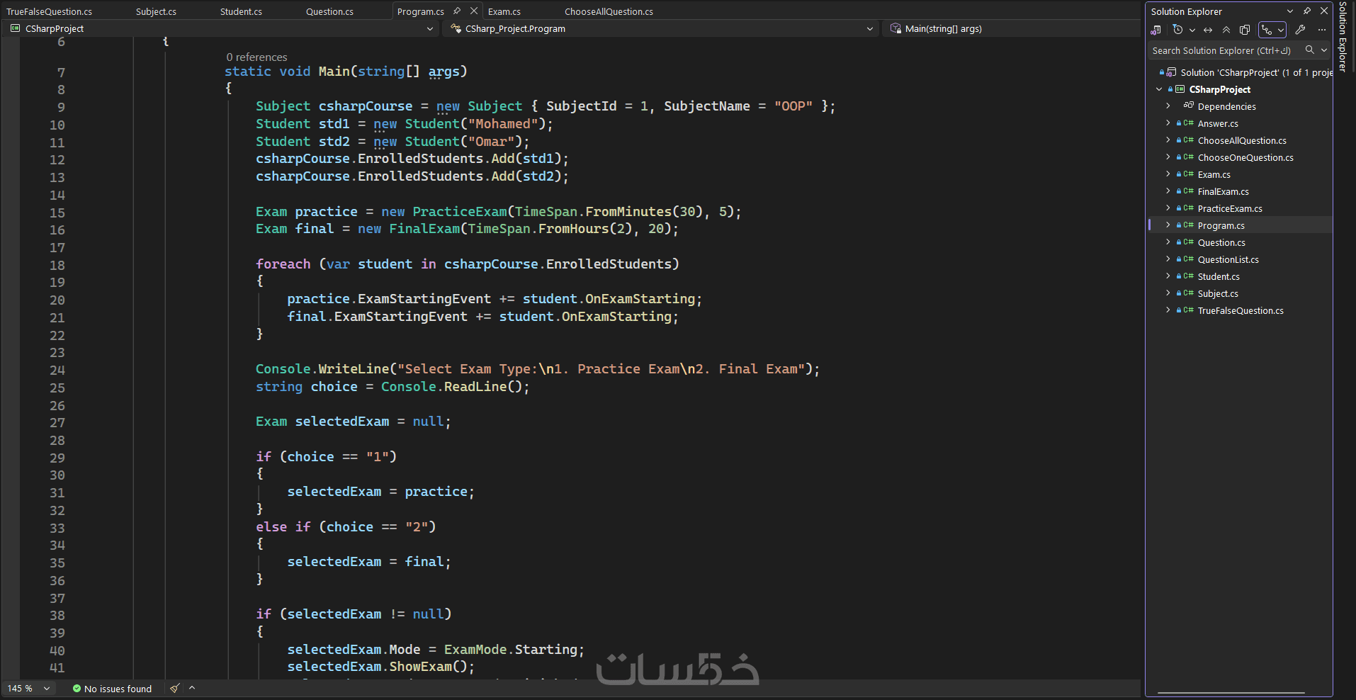 هل تحتاج إلى تنفيذ مشروع صغير أو حل مسألة برمجية باستخدام لغة سي شارب(C#) مع مبادئ البرمجة الكائنية OOP؟