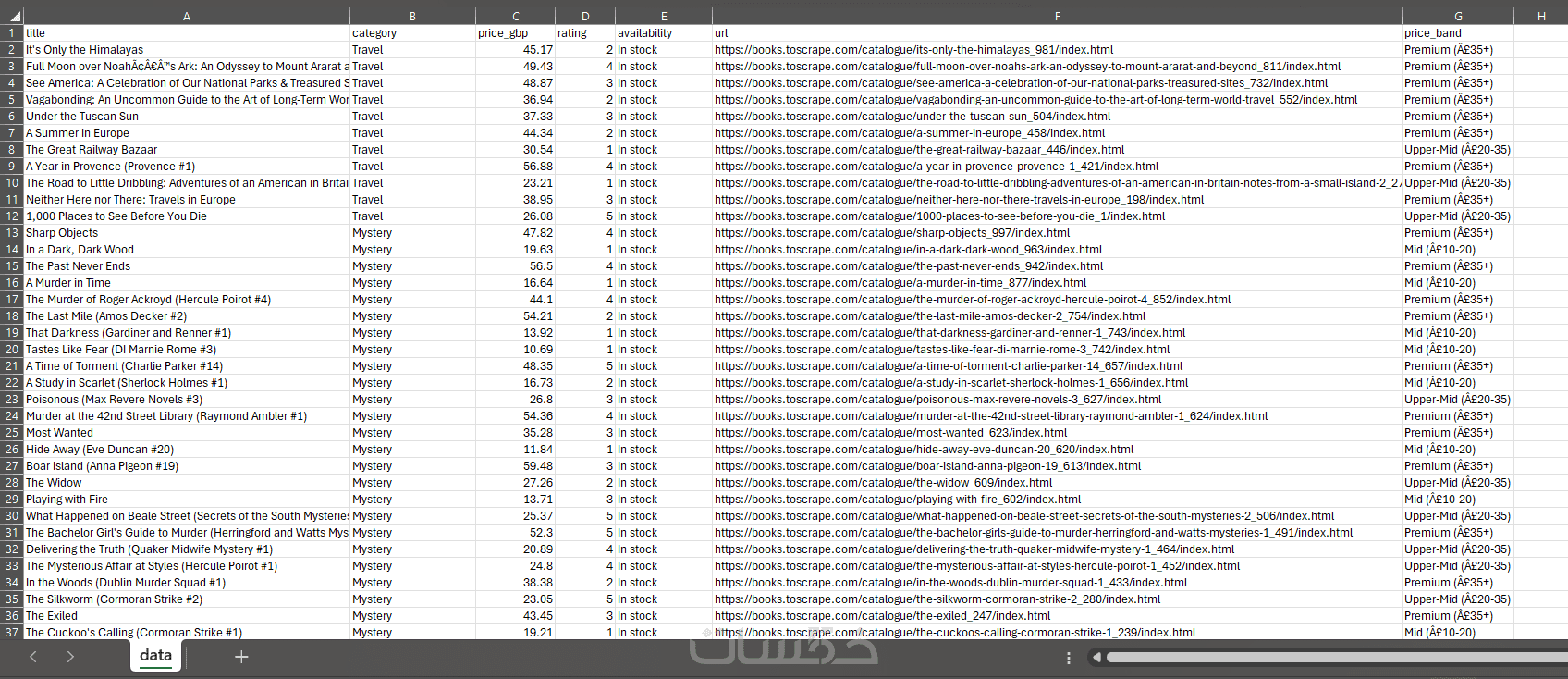 استخراج البيانات حتى 500 سجل – تنظيف البيانات وتنظيمها – تحويلها إلى CSV أو Excel أو JSON – ملف يوضح هيكل البيانات.