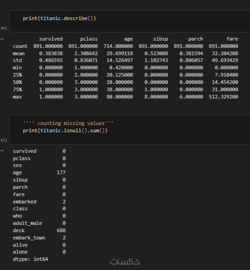 -استنباط المعلومات الوصفية للبيانات كالقيم العظمى والصغرى والمتوسطة والأنماط الشائعة