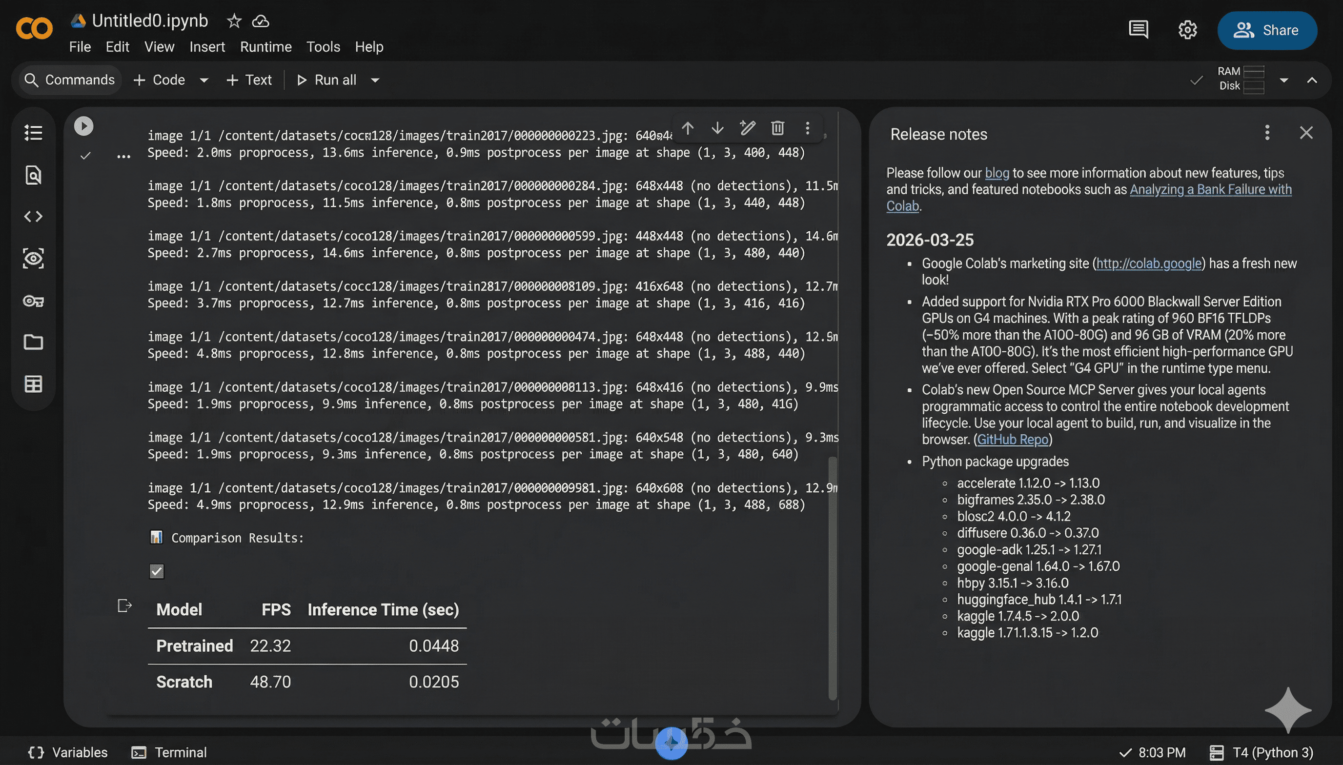 تسليم كود التدريب مع تقرير مبسط يوضح مقاييس الأداء الأساسية (مثل FPS و Inference Time).