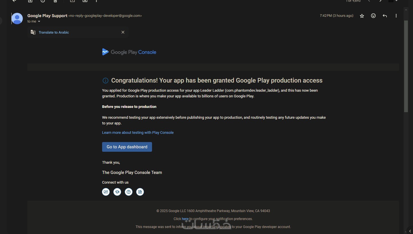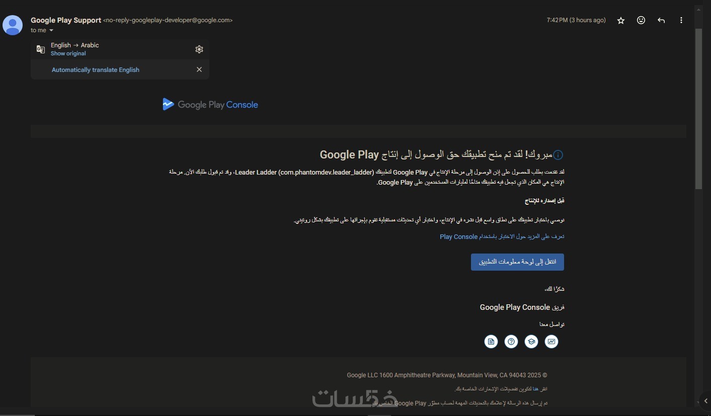 ضمان قبول التطبيق من جوجل واذا تم لرفض يتم المتابعه 14 يوم اخرى حتى يتم القبول