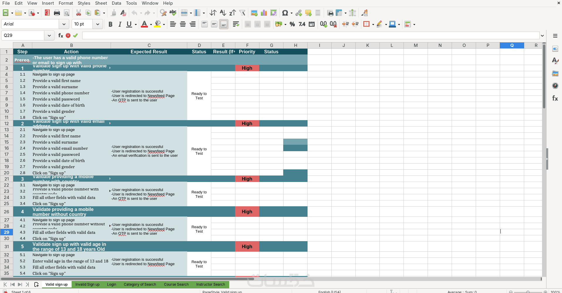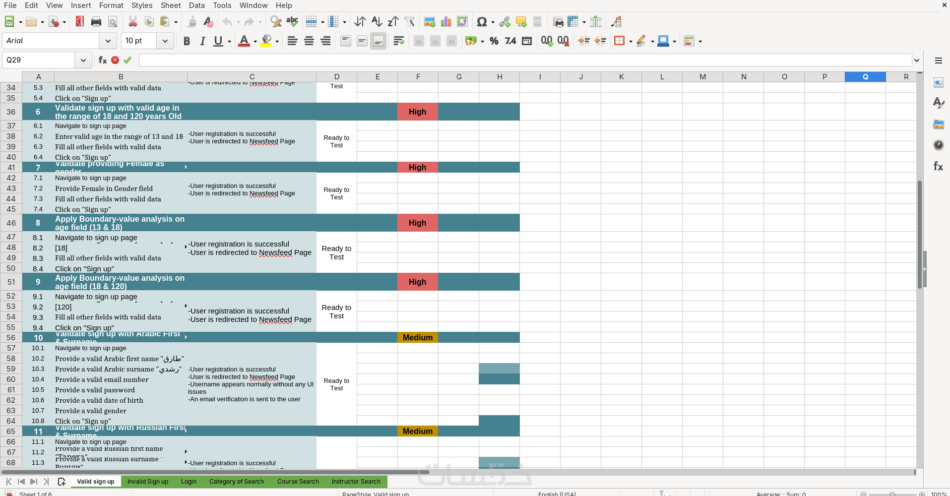 Test Case مفصل لكل خطوة من خطوات التسجيل.