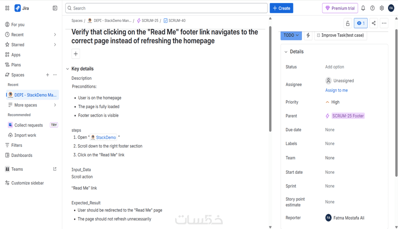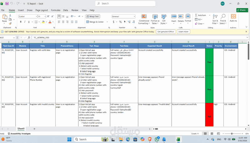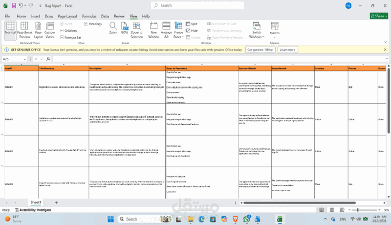 تقرير PDF منظم بالأخطاء وأهمية اصلاحها (Severity, Periority)