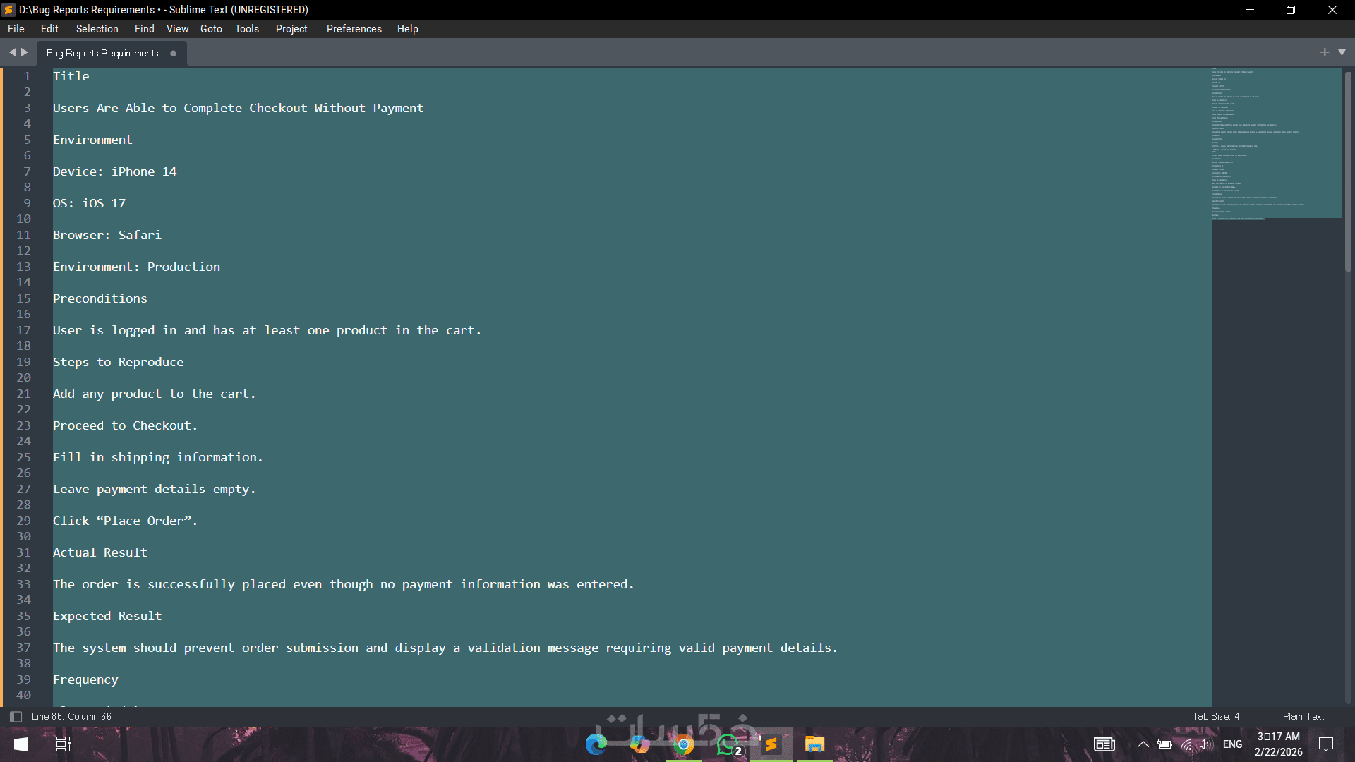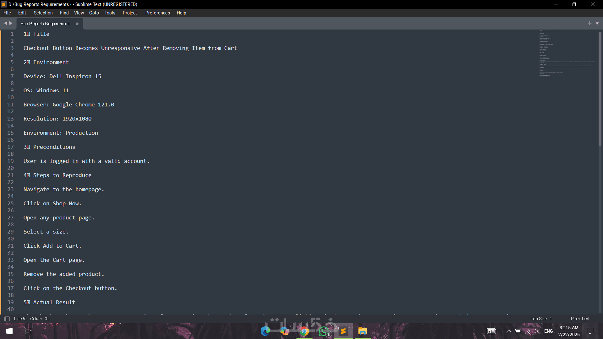 سأقوم بكتابة تقرير Bug احترافي ومنظم يساعد فريق البرمجة على فهم المشكلة بسرعة وحلها بكفاءة، مع صياغة دقيقة وواضحة وفق المعايير المعتمدة في مجال اختبار البرمجيات.