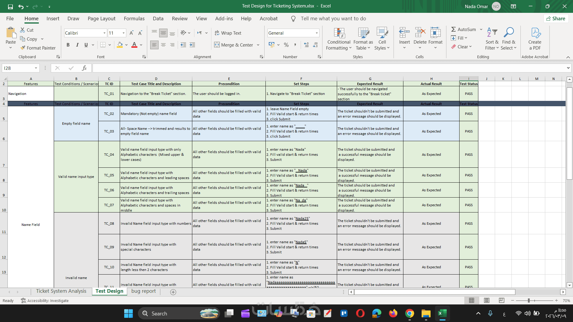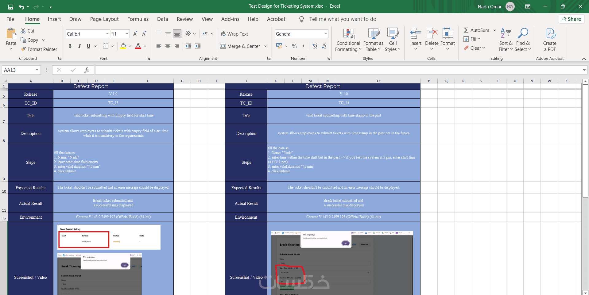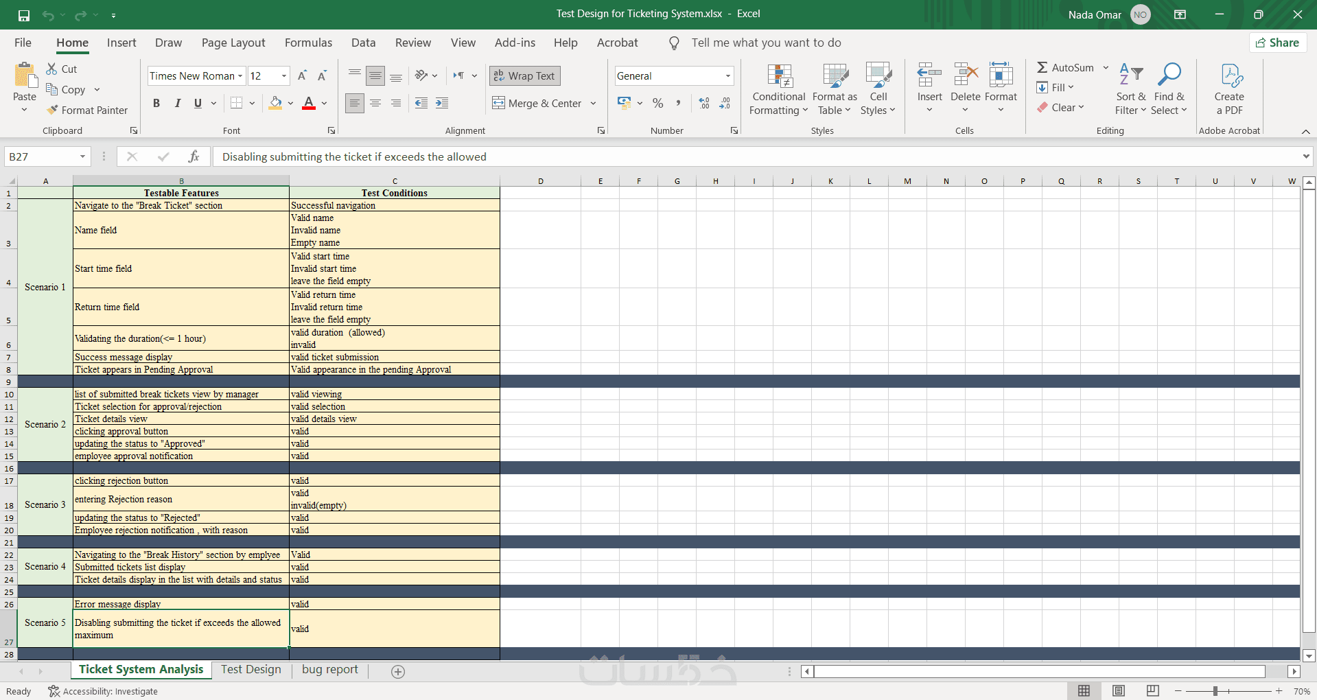 ملف Excel يحتوي على كل Test Cases وملاحظات مهمة.