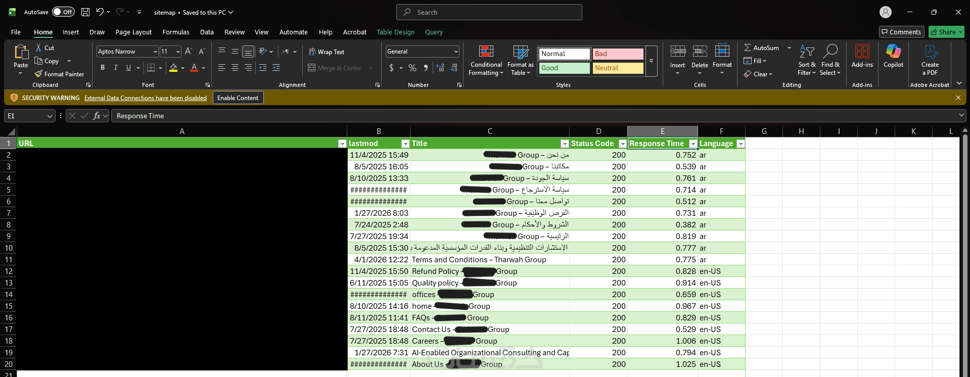 توثيق الروابط المكسورة (Broken Links - 404)، الأخطاء في عمليات إعادة التوجيه (Redirects)، الصور المفقودة، وعناوين الصفحات (Meta tags) المفقودة أو المكررة التي تضر بترتيب موقعك في محركات البحث.