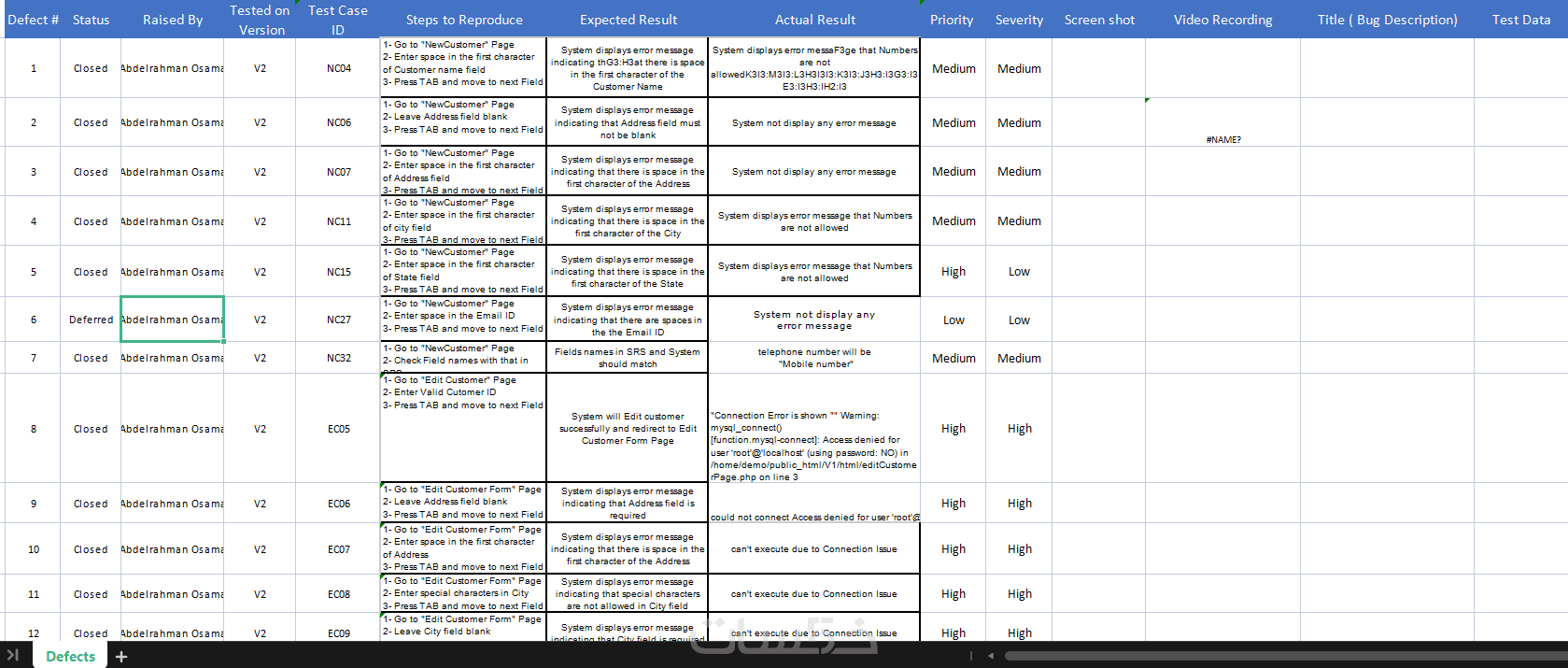 تقرير وصف المشاكل (Bug Report):