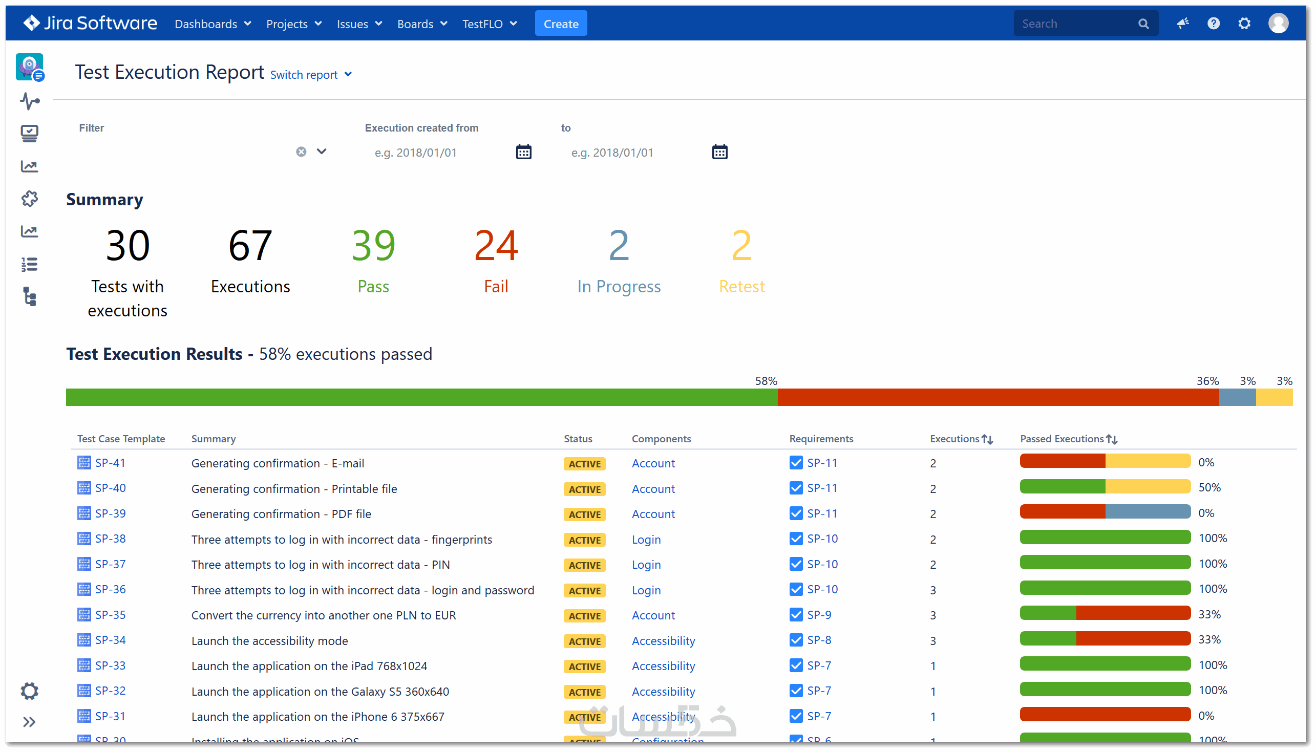 تقرير تنفيذ حالات الاختبار (Test Cases Execution Report):