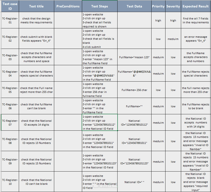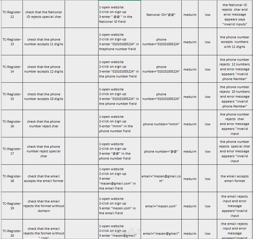 إنشاء Test Cases منظمة وواضحة تغطي كل السيناريوهات.