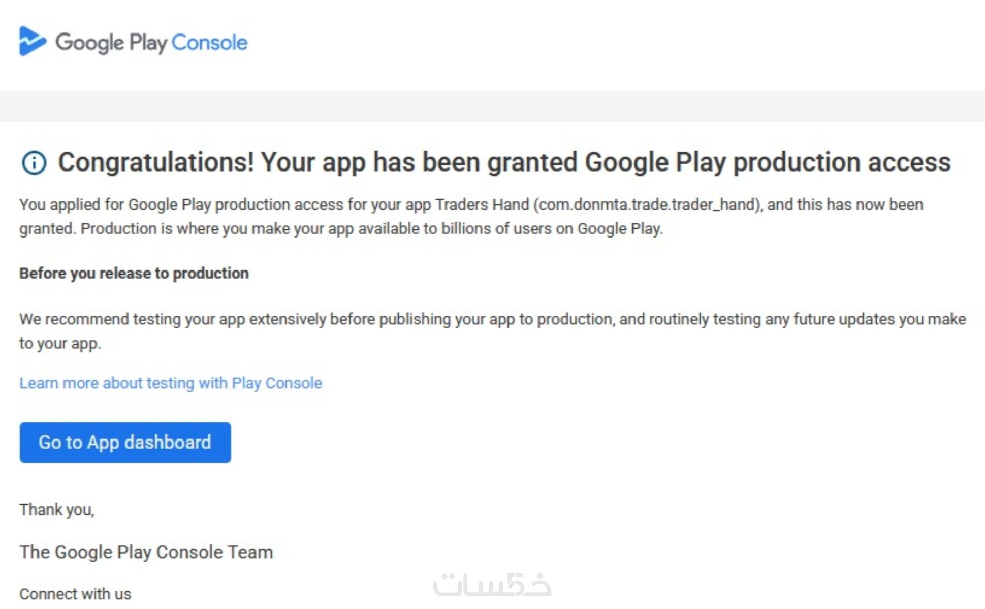 ضمان قبول التطبيق من جوجل وإذا تم الرفض يتم متابعة 14 يوم آخرين حتى قبول التطبيق
