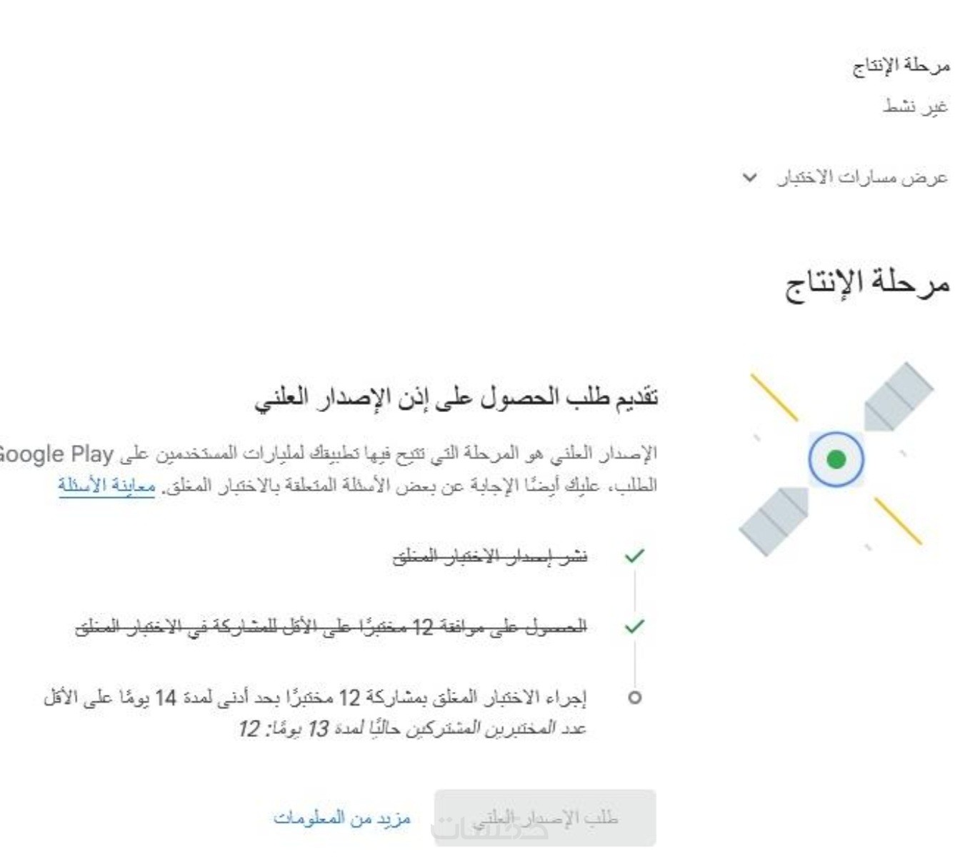 إنهاء الاختبار المغلق وفتح انشاء الاصدار العلني او الانتاج