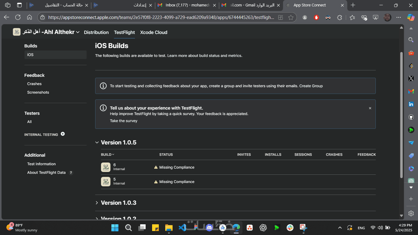 - رفع الإصدار الأول للتطبيق الذي سيرسل للاختبار الداخلي للتحقق من تلبيته معايير جوجل بلاي الخاصة بنشر التطبيقات.