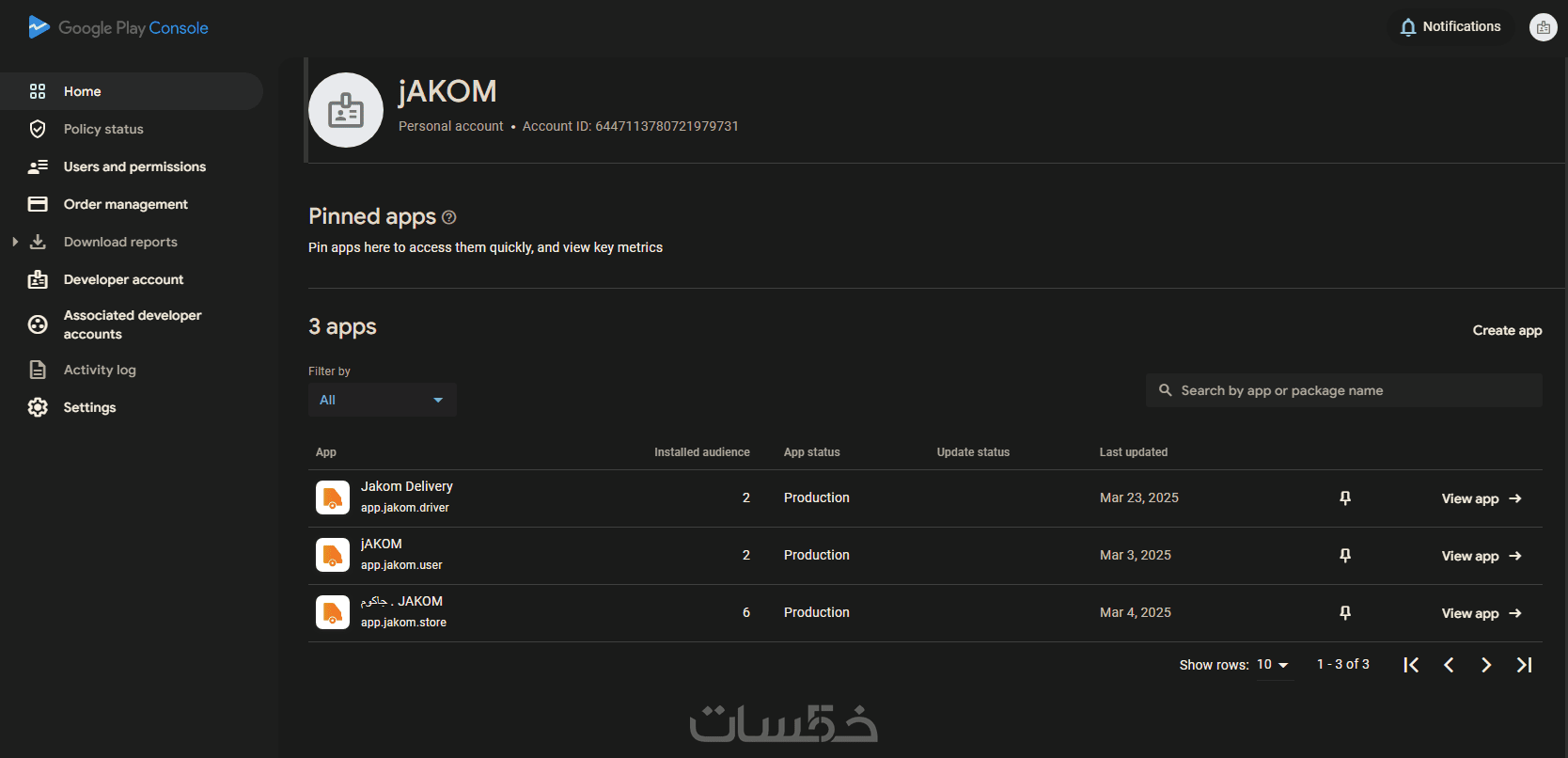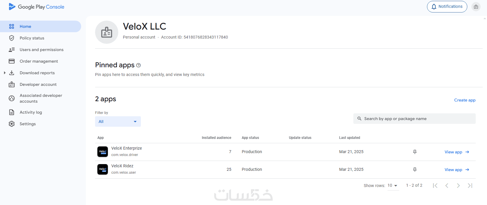 - إنشاء حساب مطور على جوجل بلاي كونسول.