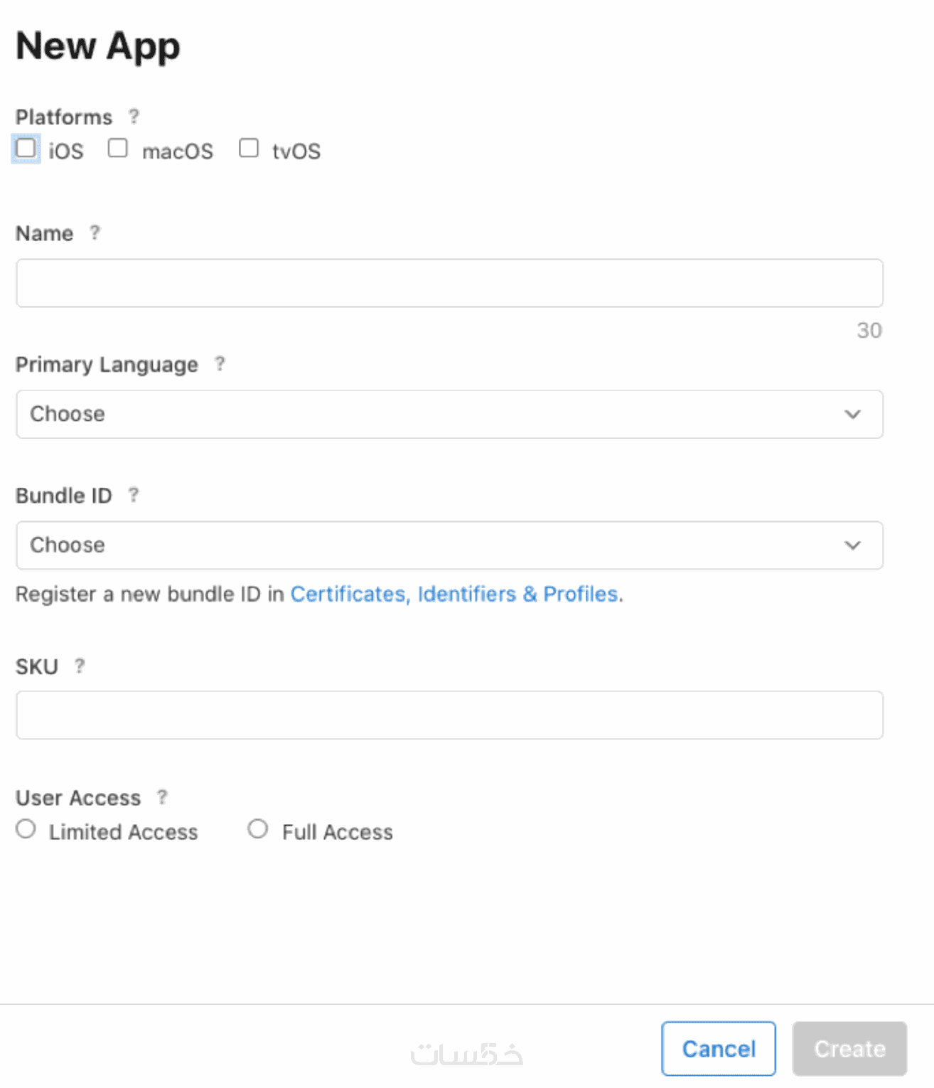 - إنشاء معرف التطبيق أو APP ID وإدخال Bundle Identifier الخاص بتطبيقك.
