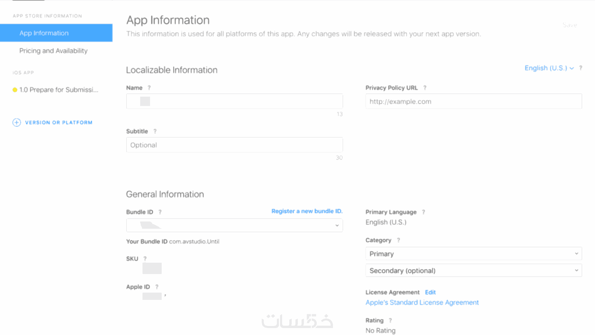 تبين هذه الخطوات كيفية رفع تطبيق على أب ستور وستلاحظ بعض التشابه بينها وبين الرفع على جوجل بلاي: