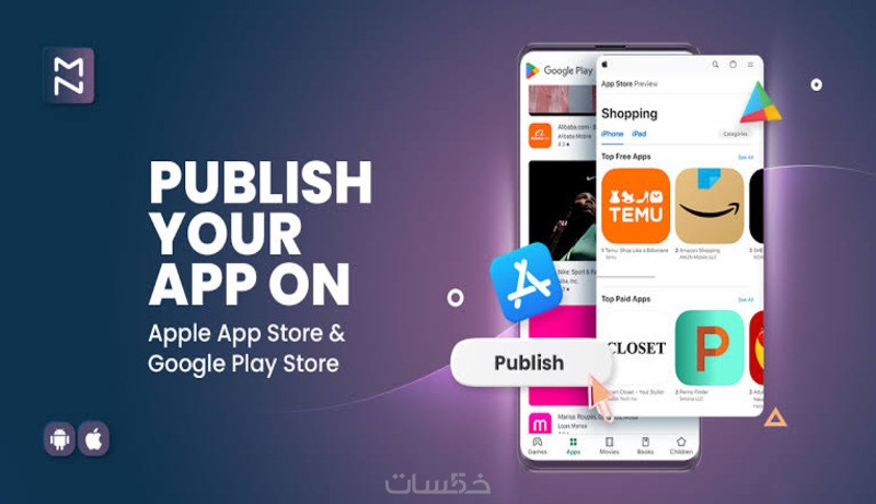 يقصد بها مساعدتك برفع تطبيقك على متجر التطبيقات الذي تريده مثل: جوجل بلاي وأب ستور وسامسونج وهواوي وأمازون وأبك بيور وغيرها ليصبح متاحًا للتحميل والاستخدام، وهذا بعد موافقة المتجر واجتياز تطبيقك لاختبارات فريق المتجر.