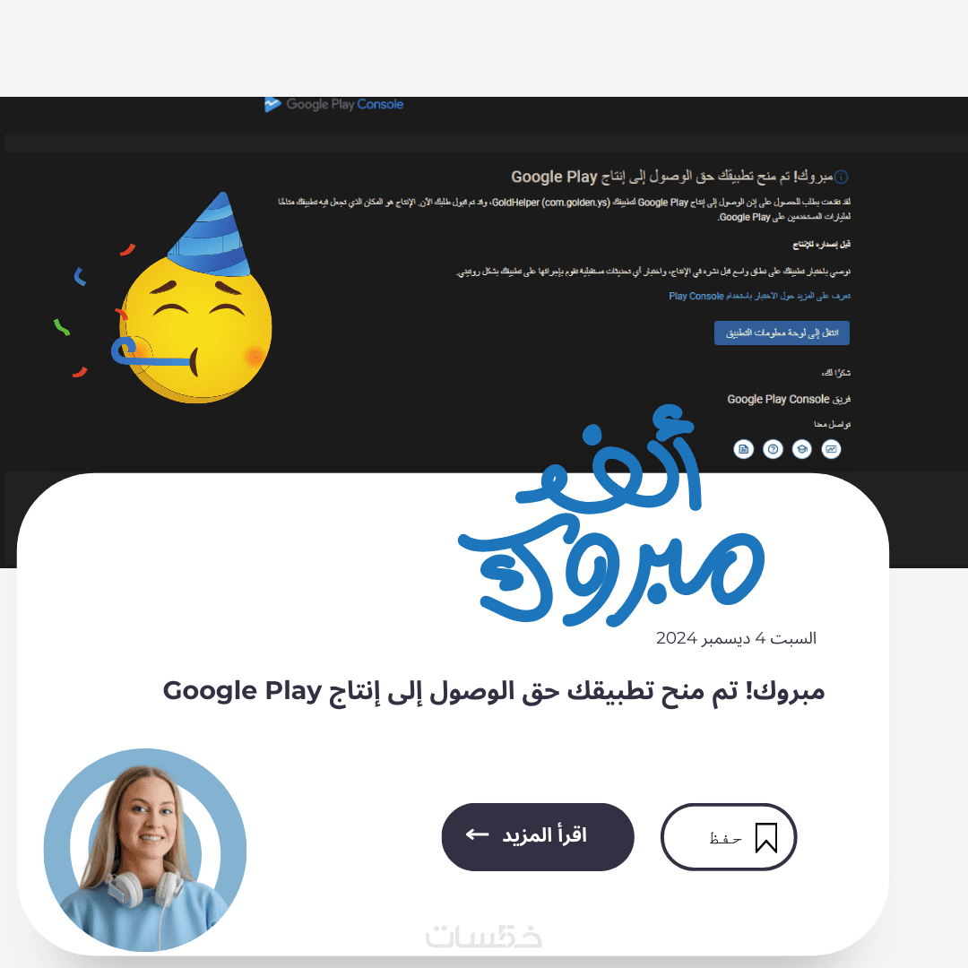 - لقطات شاشة احترافية وبالدقة المحددة تظهر ميزات تطبيقك.