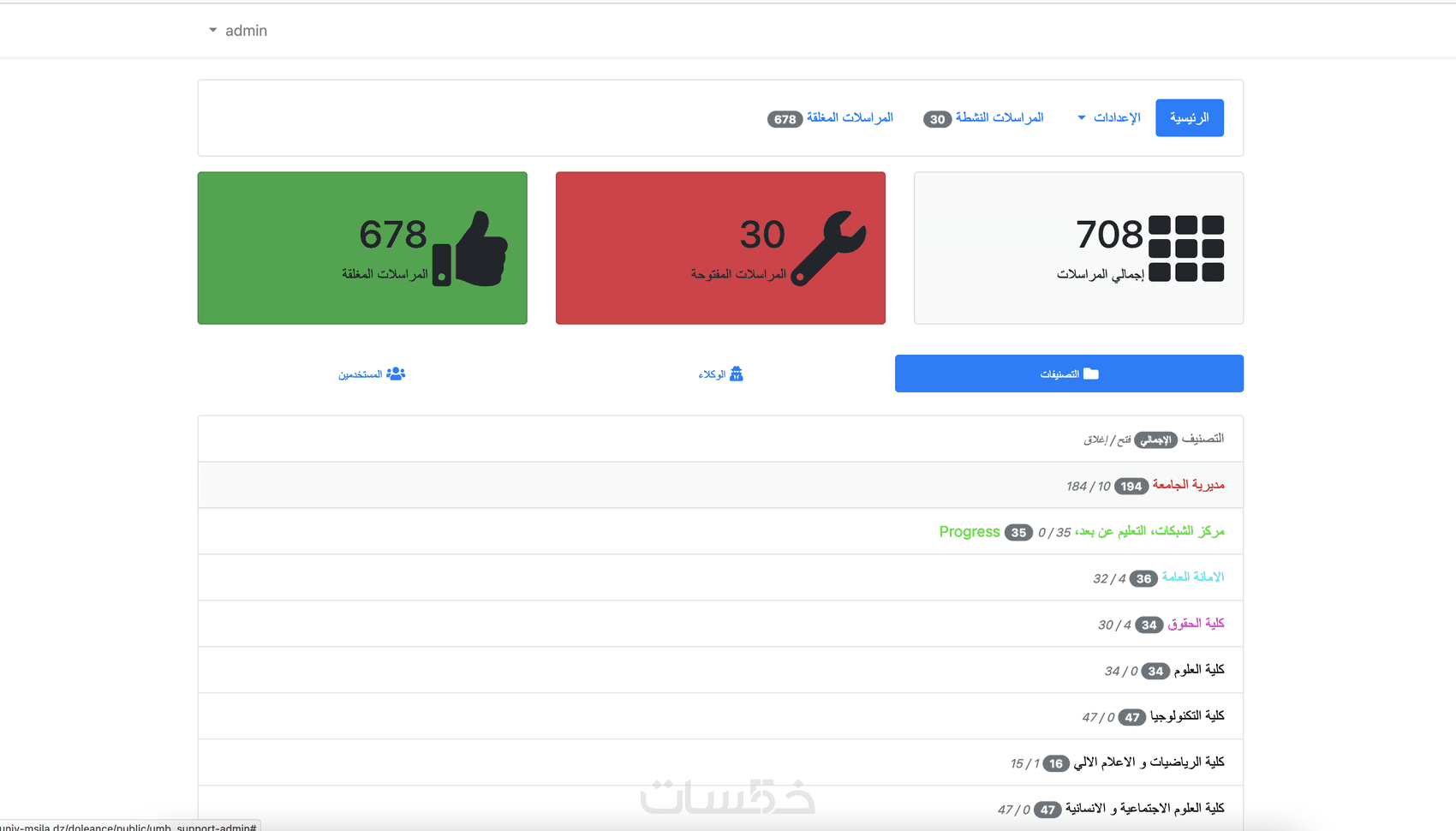 ** لوحة التحكم بالموقع **