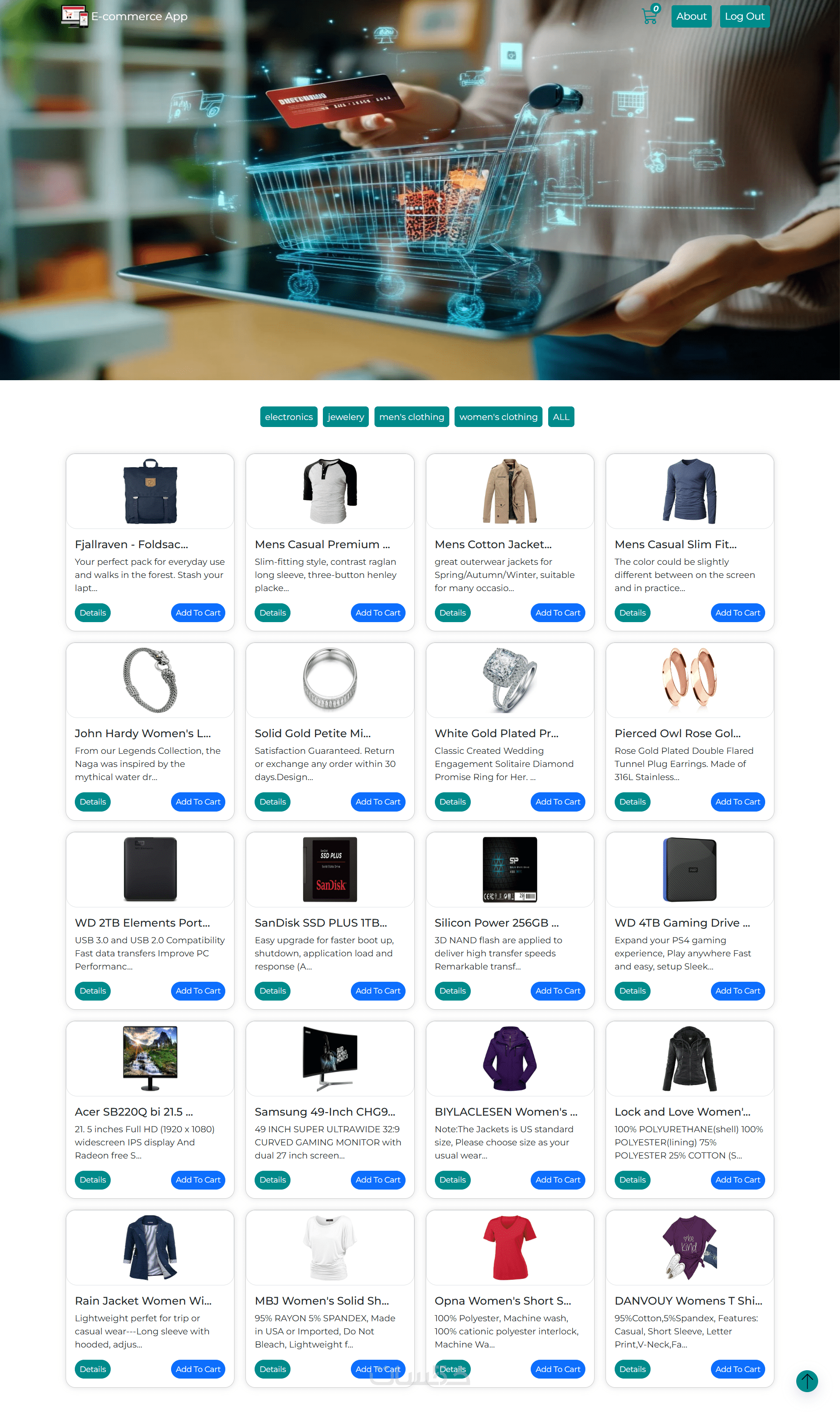 عرض متطور للمنتجات باستخدام React لواجهة مستخدم سلسة وتفاعلية.