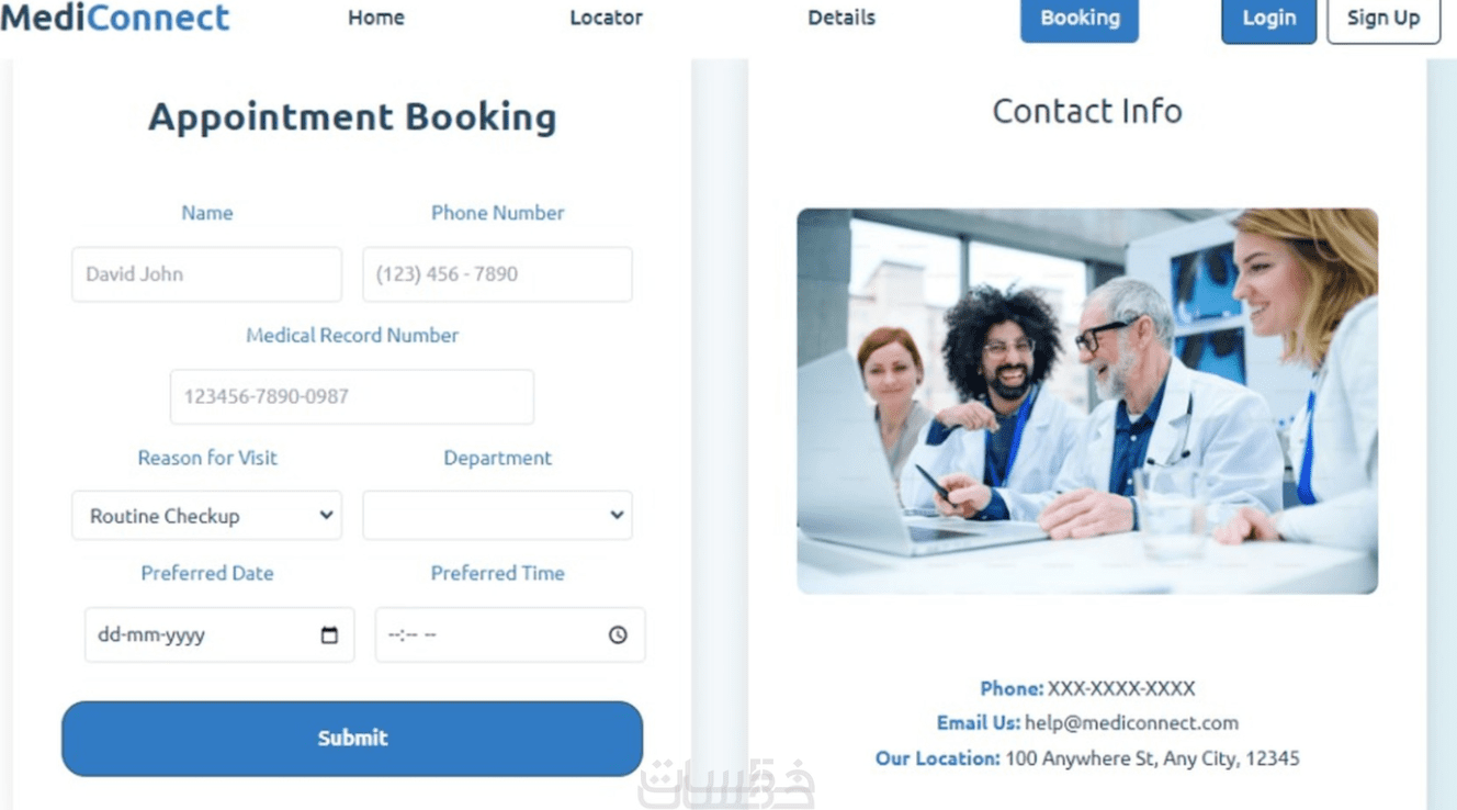 الفوتر (Footer): يتضمن معلومات التواصل وروابط إضافية إذا لزم الأمر.