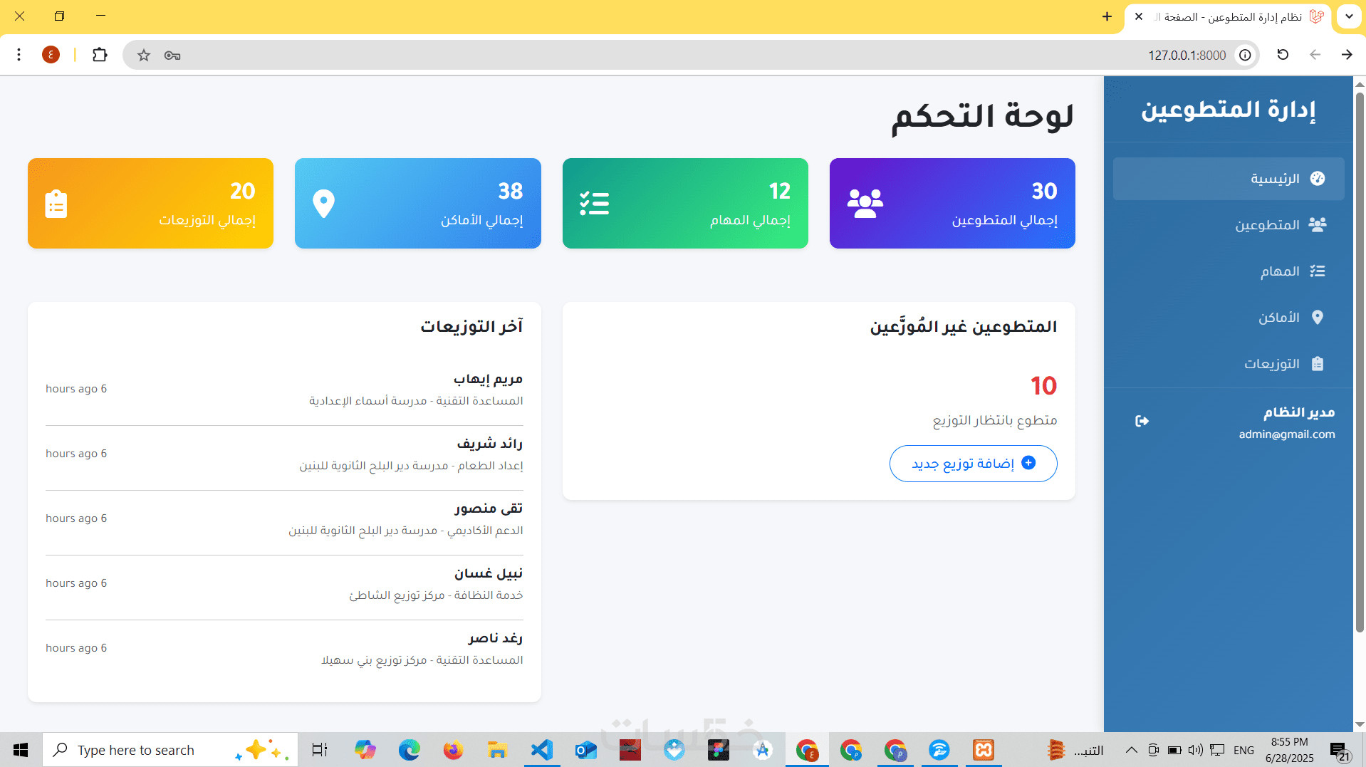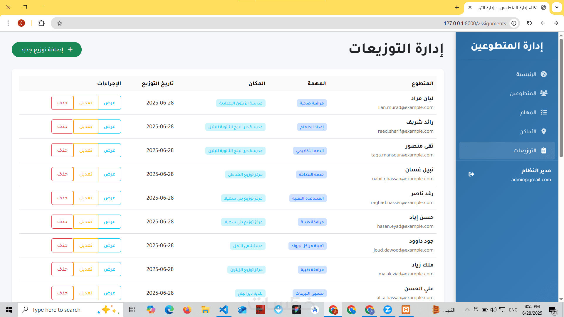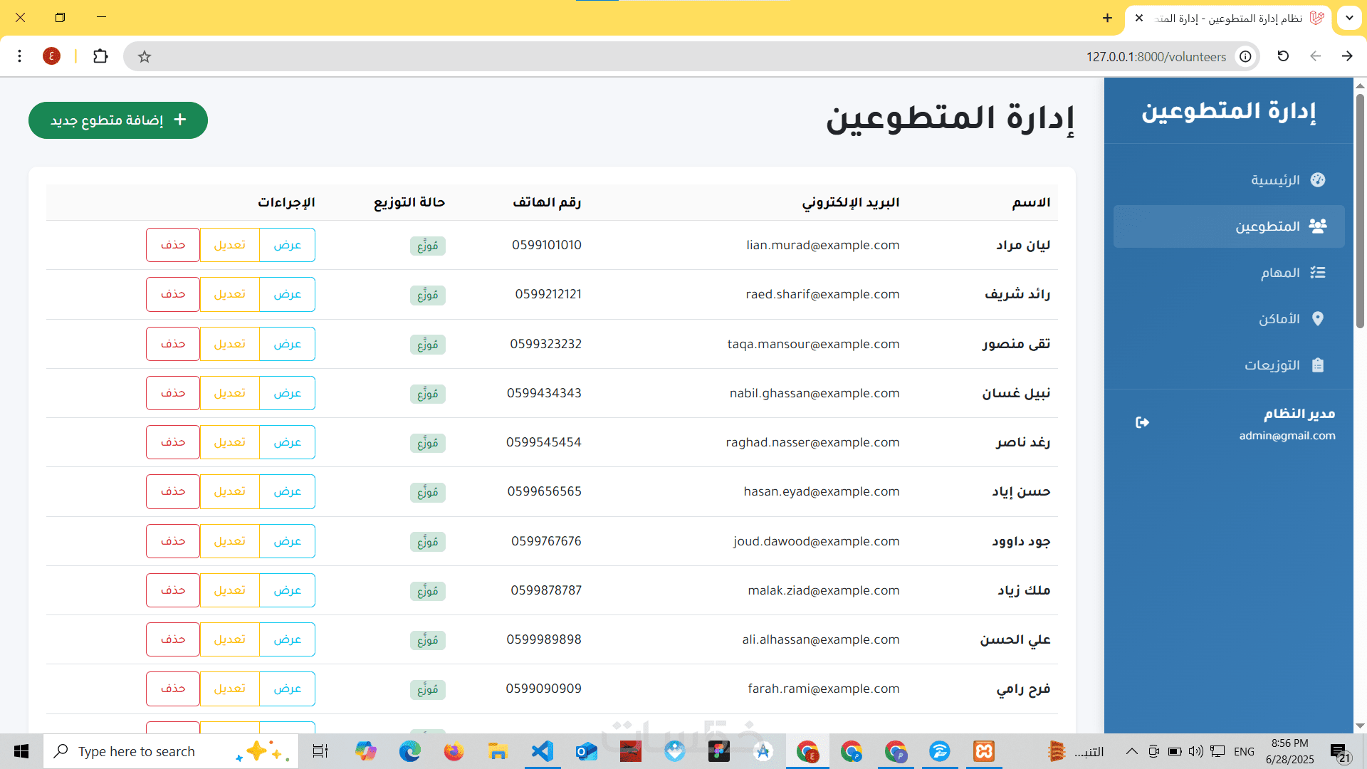 هذه الخدمة مناسبة لأنظمة مثل: إدارة المتطوعين، الموظفين، الطلبات، التوزيعات، أو أي تطبيق إداري مخصص.