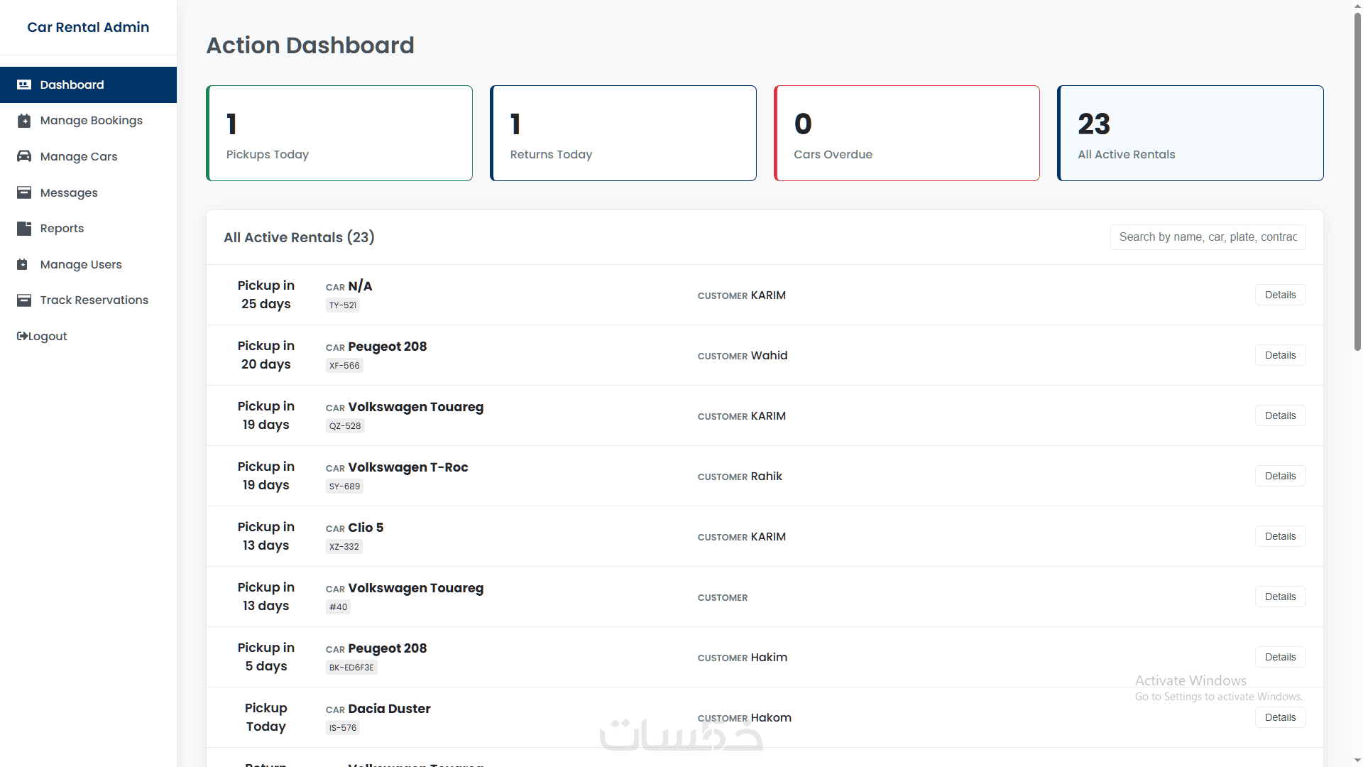 مثال: صفحة "إدارة المنتجات"، "إدارة الحجوزات"، أو "إدارة العملاء".