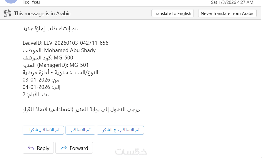 4- خصم رصيد الإجازة تلقائيًا عند الموافقة