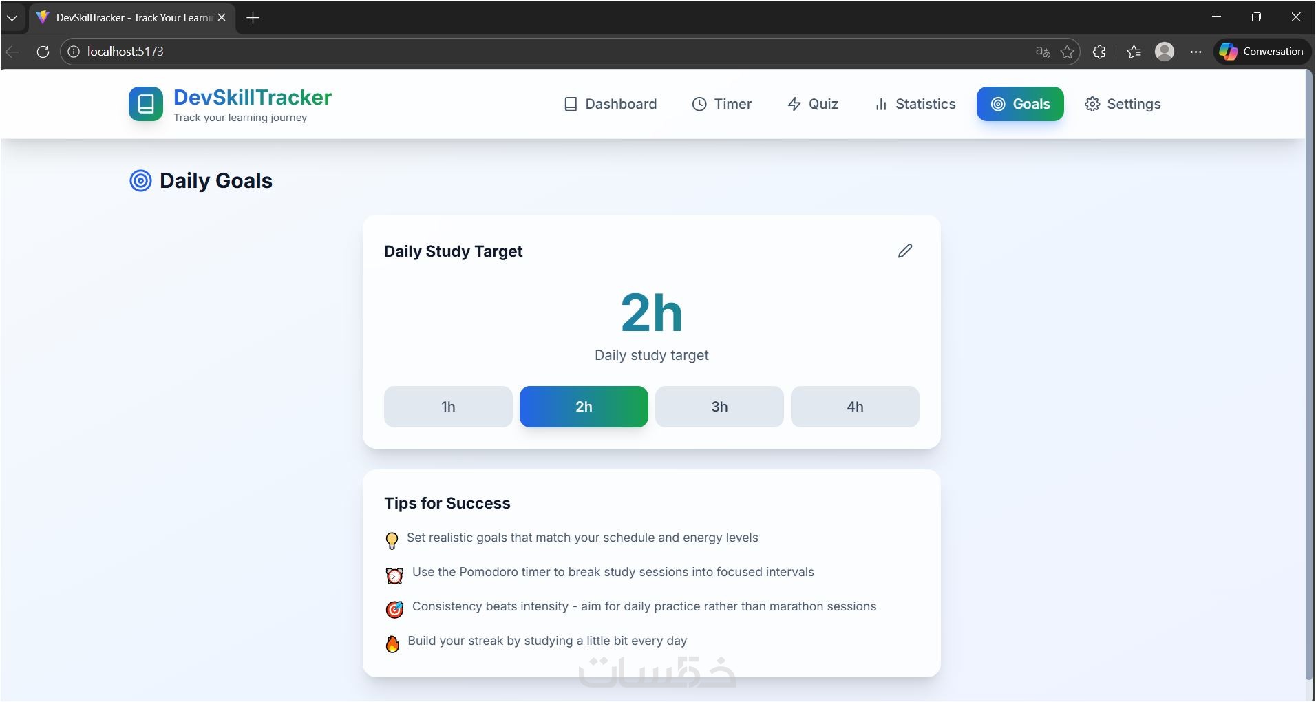 أقدم لك خدمة برمجة تطبيق DevSkillTracker الاحترافي، وهو أداة متكاملة لمساعدتك على تتبع مسار تعلمك للبرمجة وتنظيم مهاراتك بشكل مرئي ومنظم.