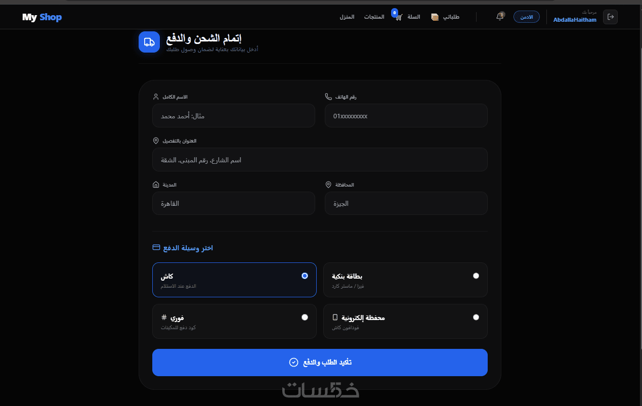 العمل يكون بأحدث التقنيات البرمجية لضمان السرعة والأمان: PHP (Laravel) - React.js - MySQL - Tailwind CSS - JavaScript - OOP.