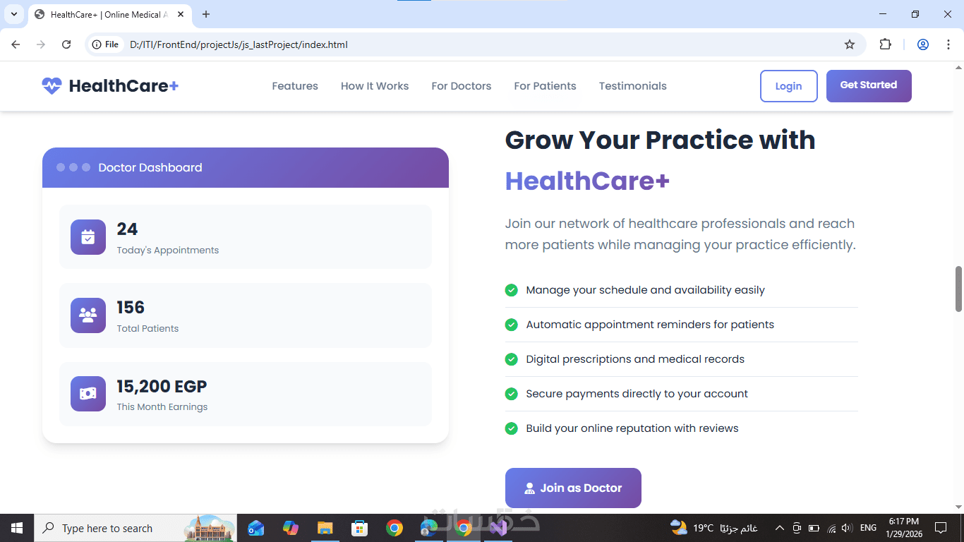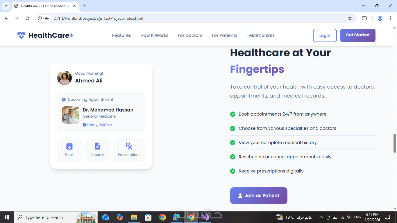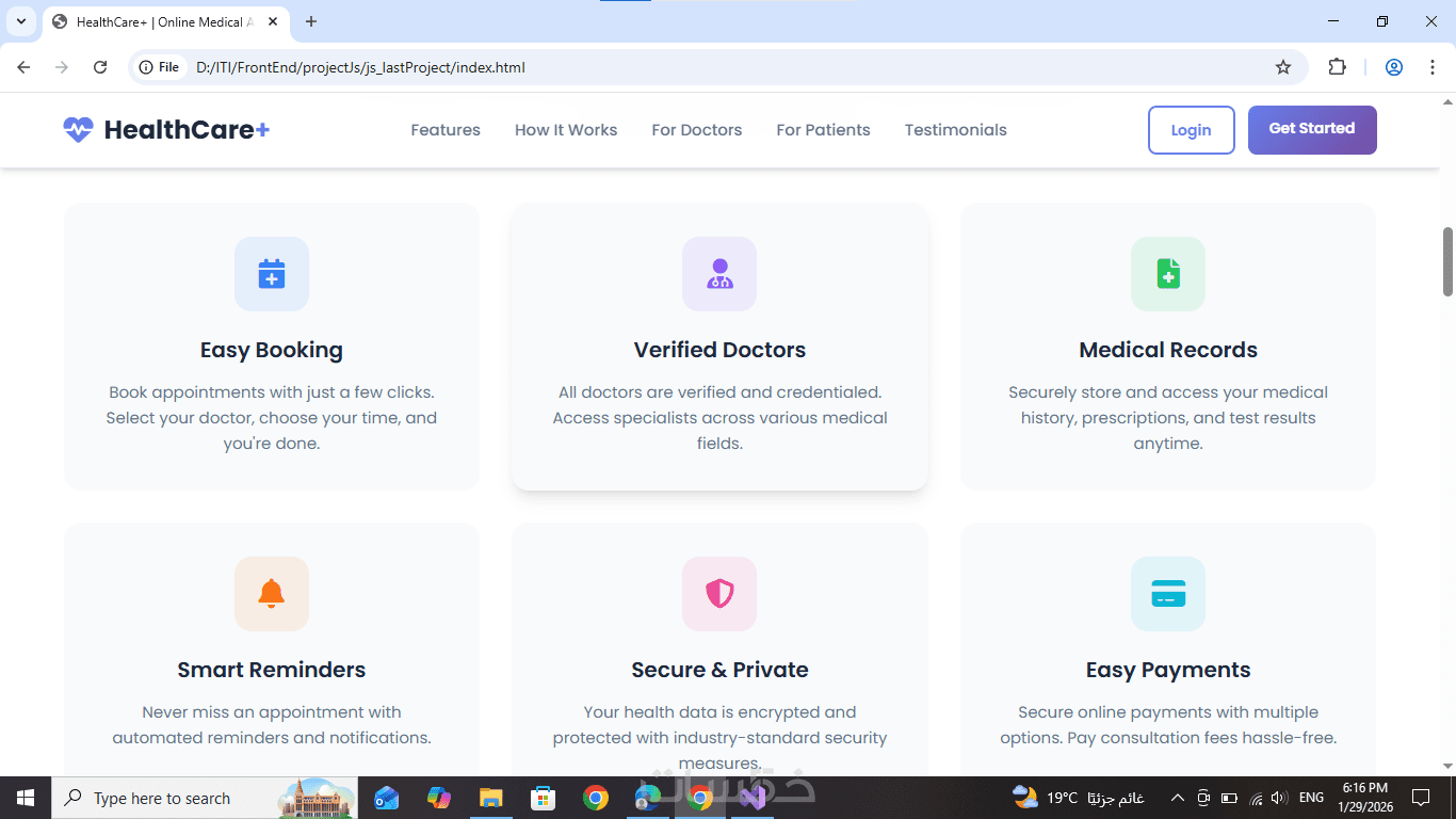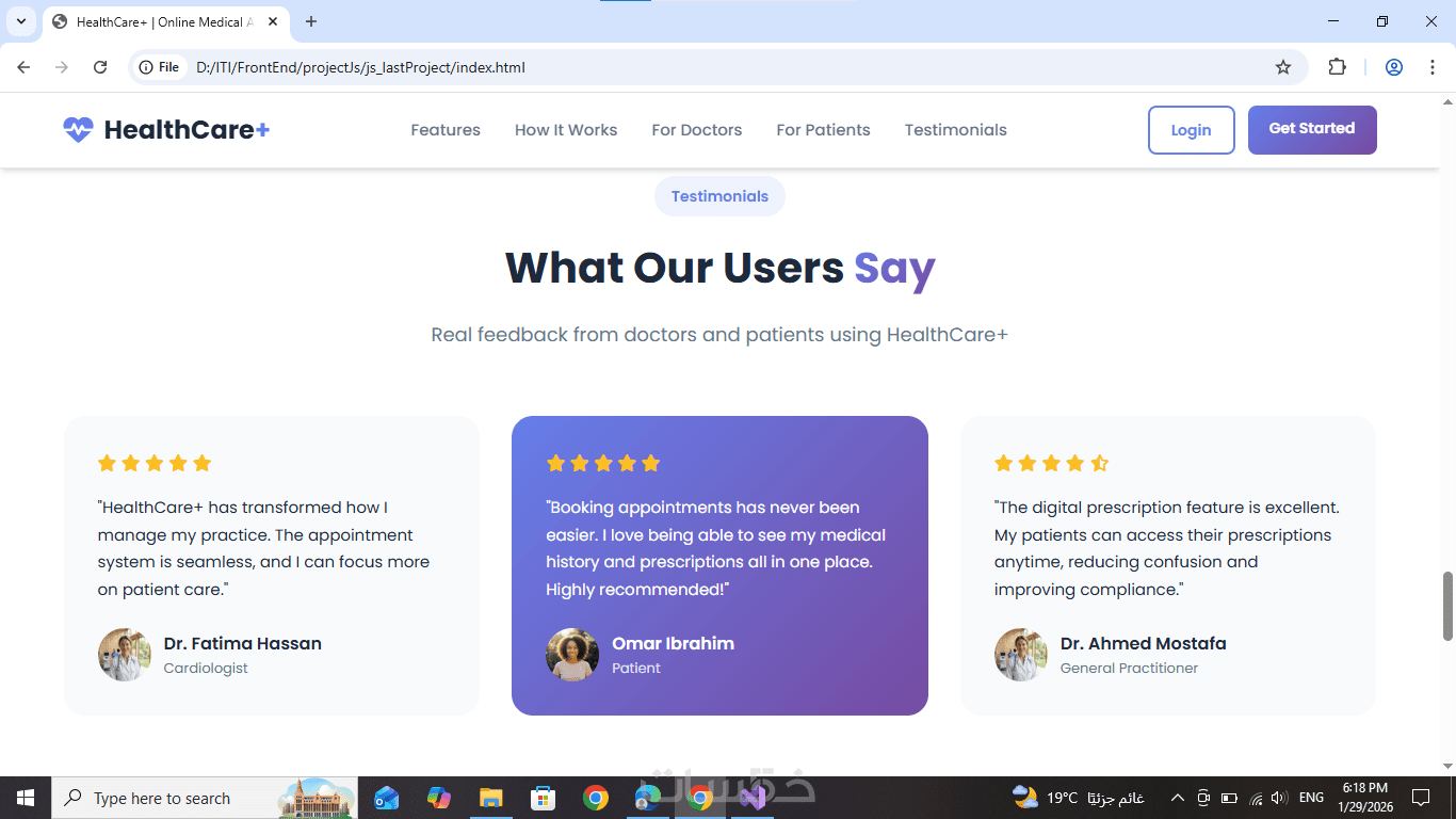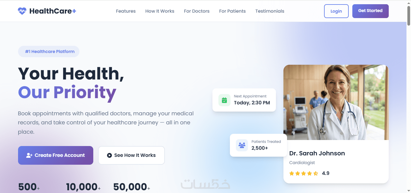 HTML وCSS وJavaScript، بتصميم متجاوب بالكامل يعمل على جميع الأجهزة.