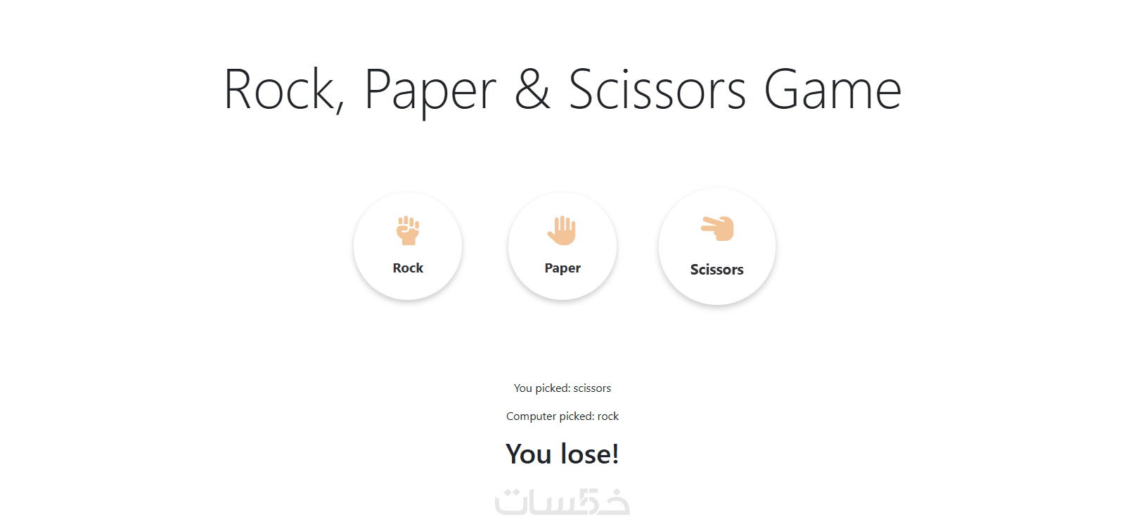 لعبة حجر ، ورقة، و مقص باستخدام : html,bootstap,css,js