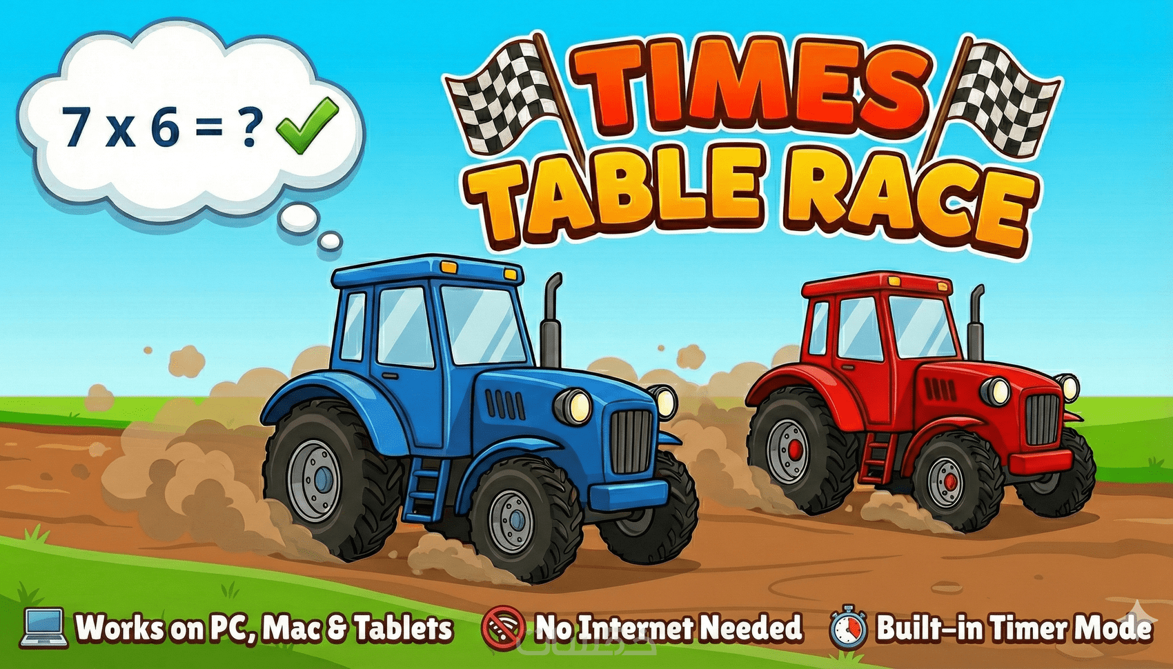 لعبة سباق الجرارات: مسابقة جدول الضرب التفاعلية
