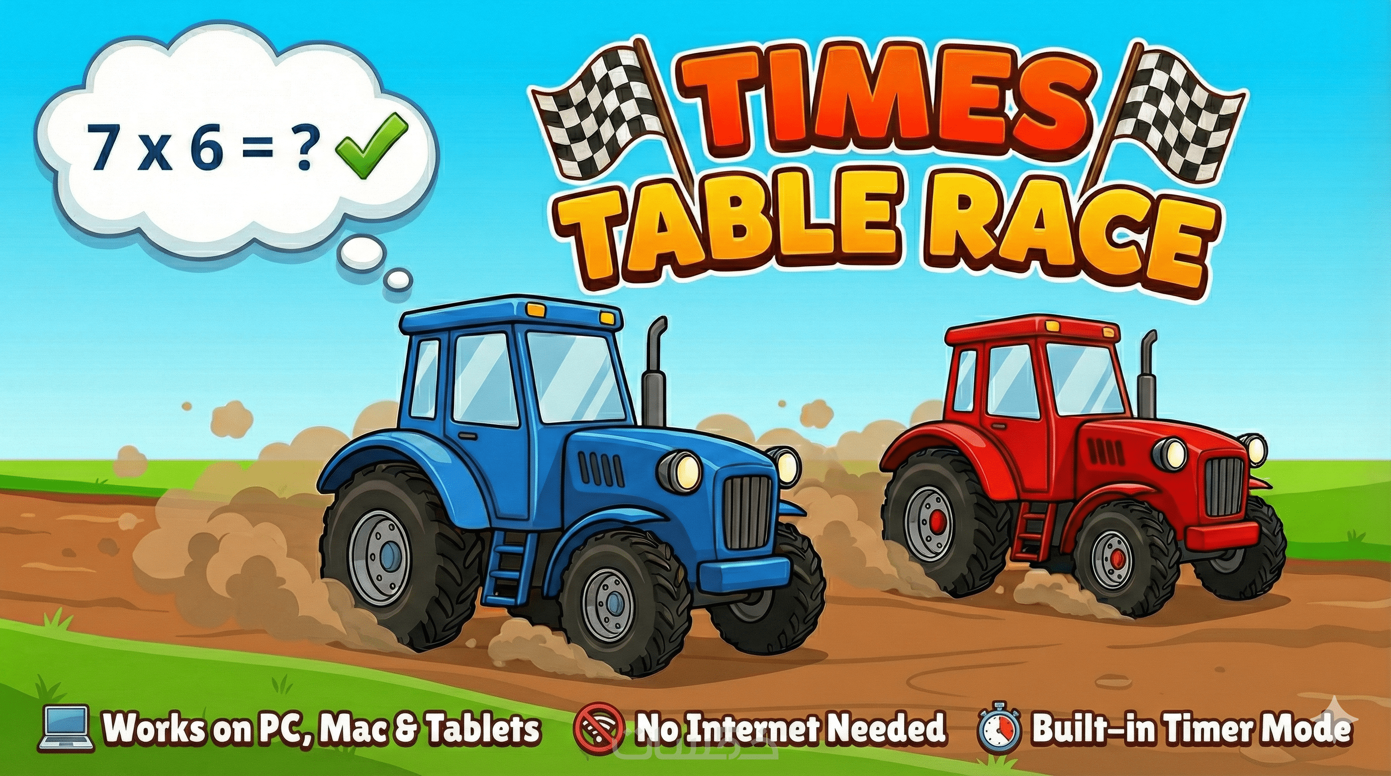 وداعاً لأوراق العمل المملة! اجعل مراجعة جدول الضرب تجربة حماسية مع لعبة "سباق الجرارات".