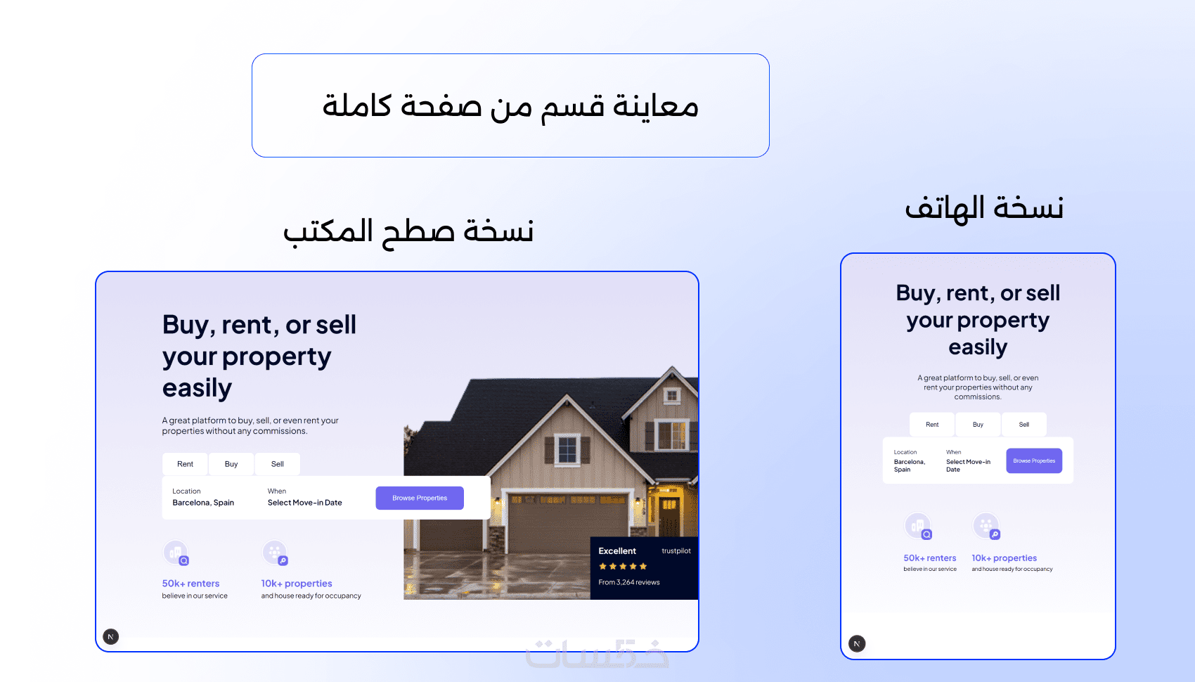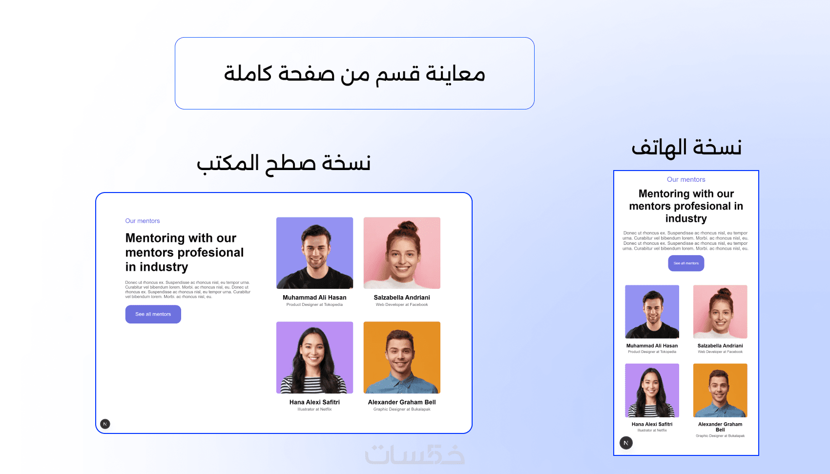 ستحصل على معاينة دقيقة لكل قسم تقوم بطلبه (نسخة حاسوب + نسخة هاتف).