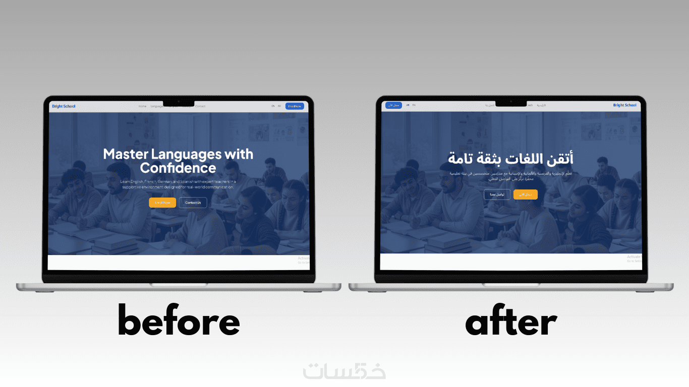 تطبيق i18n ودعم RTL على 4 صفحات في موقع Next.js/React لضمان عرض صحيح للعربية